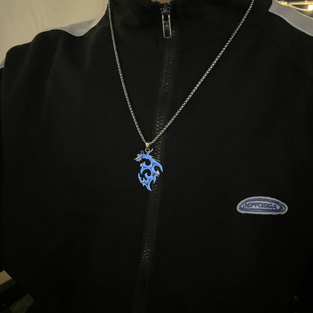 This stainless steel necklace features a luminous flame dragon design, perfect for adding a touch of mystical style to your look.