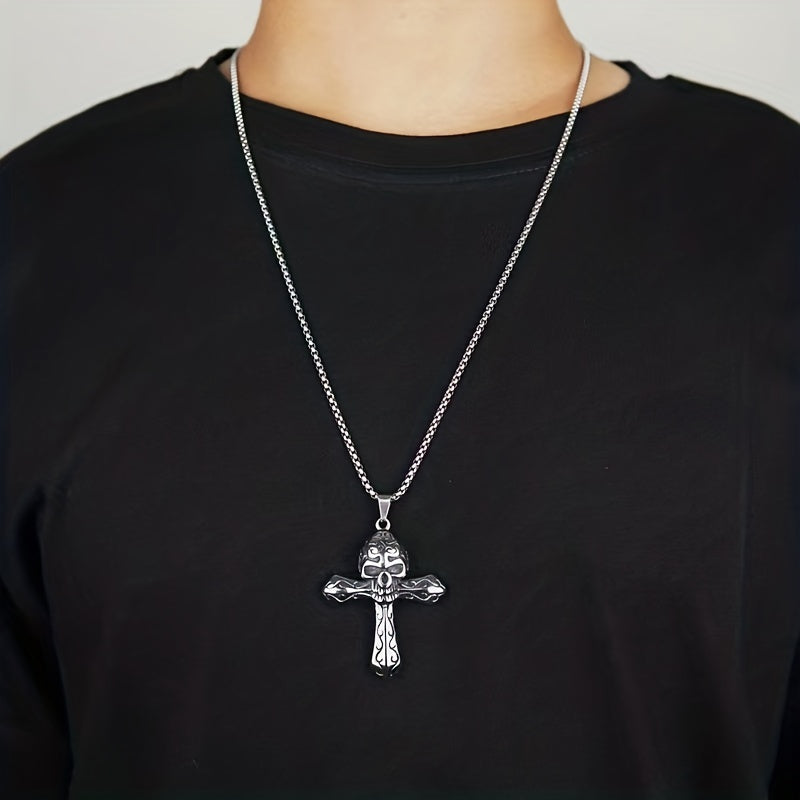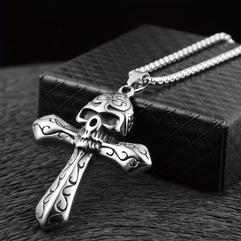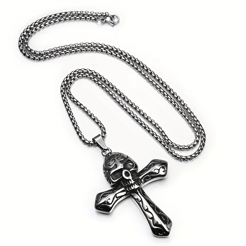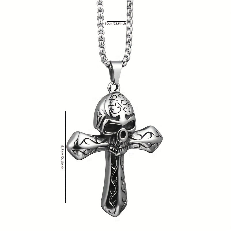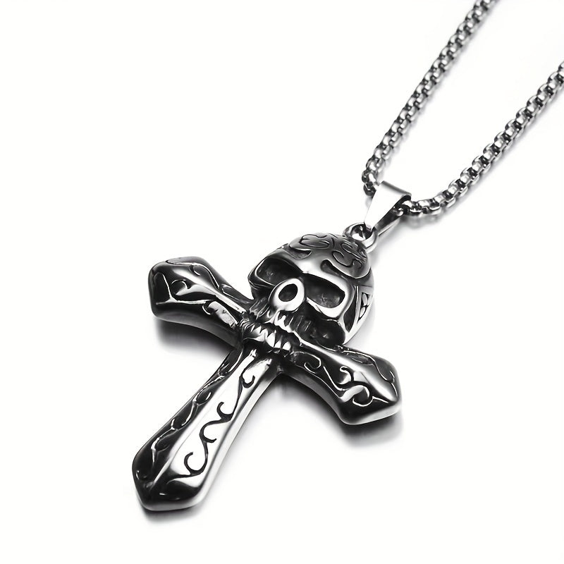 Add a touch of punk style to your outfit with this metal rope necklace featuring a skull cross pendant.