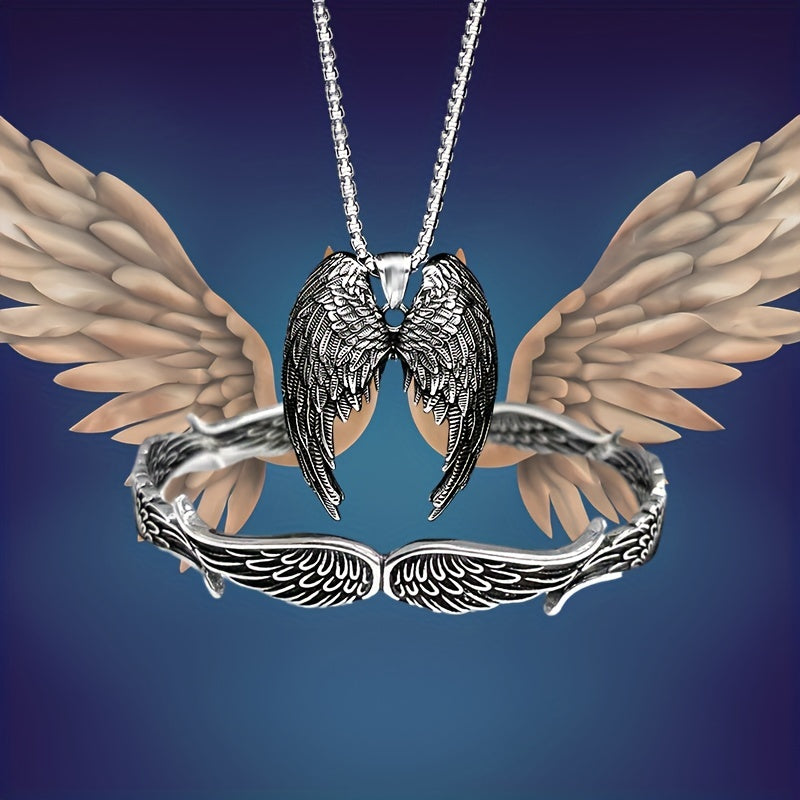 This set includes a green angel wings pendant necklace and matching bracelet, making it a perfect gift for men, couples, or women. The design is stylish and unique, adding a touch of elegance to any outfit.