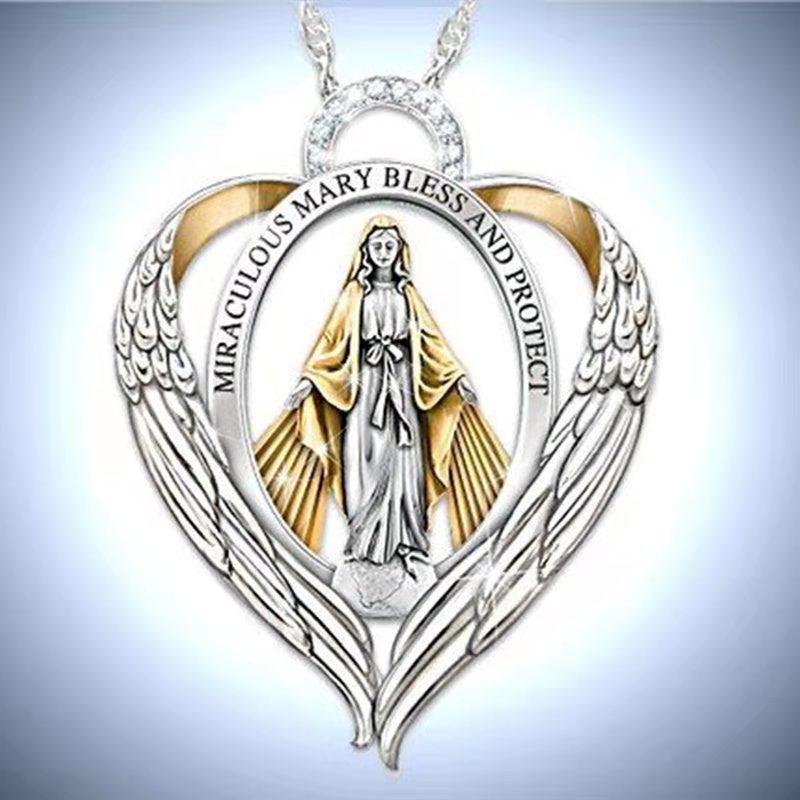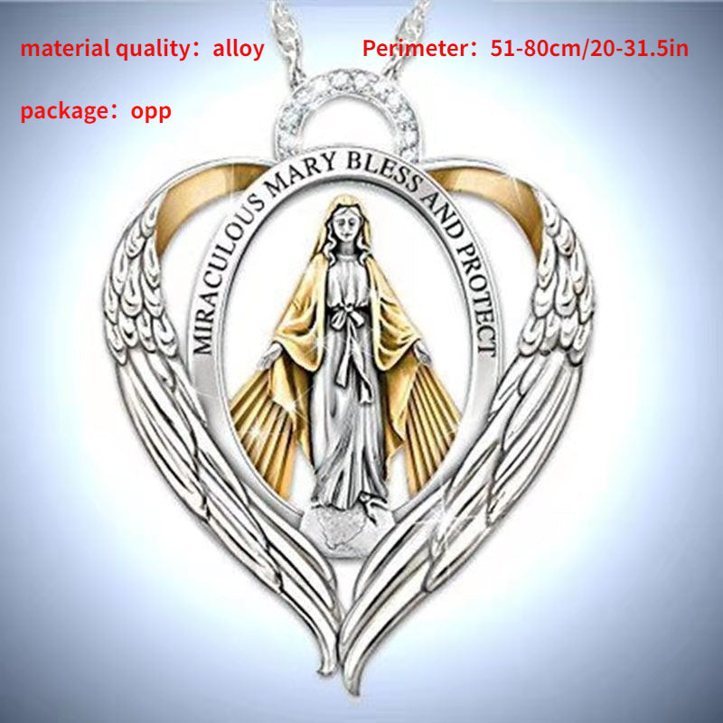 Elegant men's necklace featuring a mysterious angel guardian design with a peach heart pendant. Perfect for adding a touch of spirituality and style to any outfit.