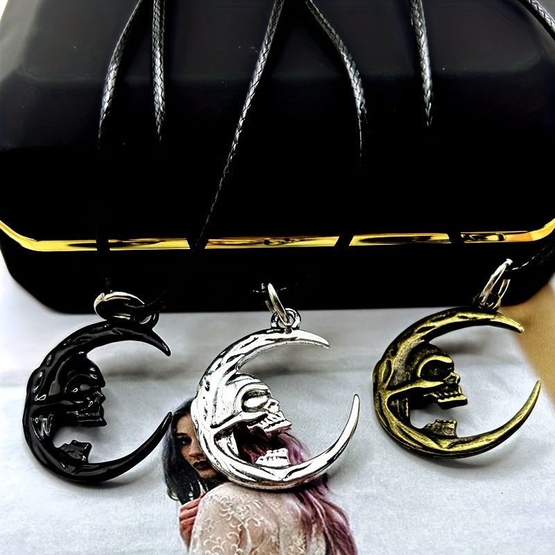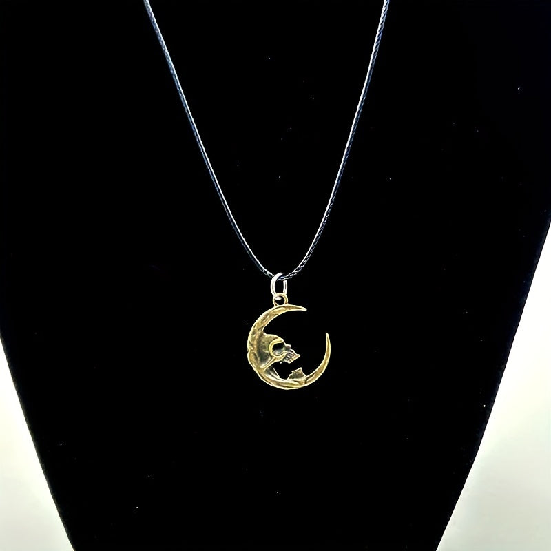 Add a touch of edgy style to your look with this vintage skull pendant necklace featuring a moon design. Crafted with high-quality materials, this pendant is perfect for everyday wear or special occasions.