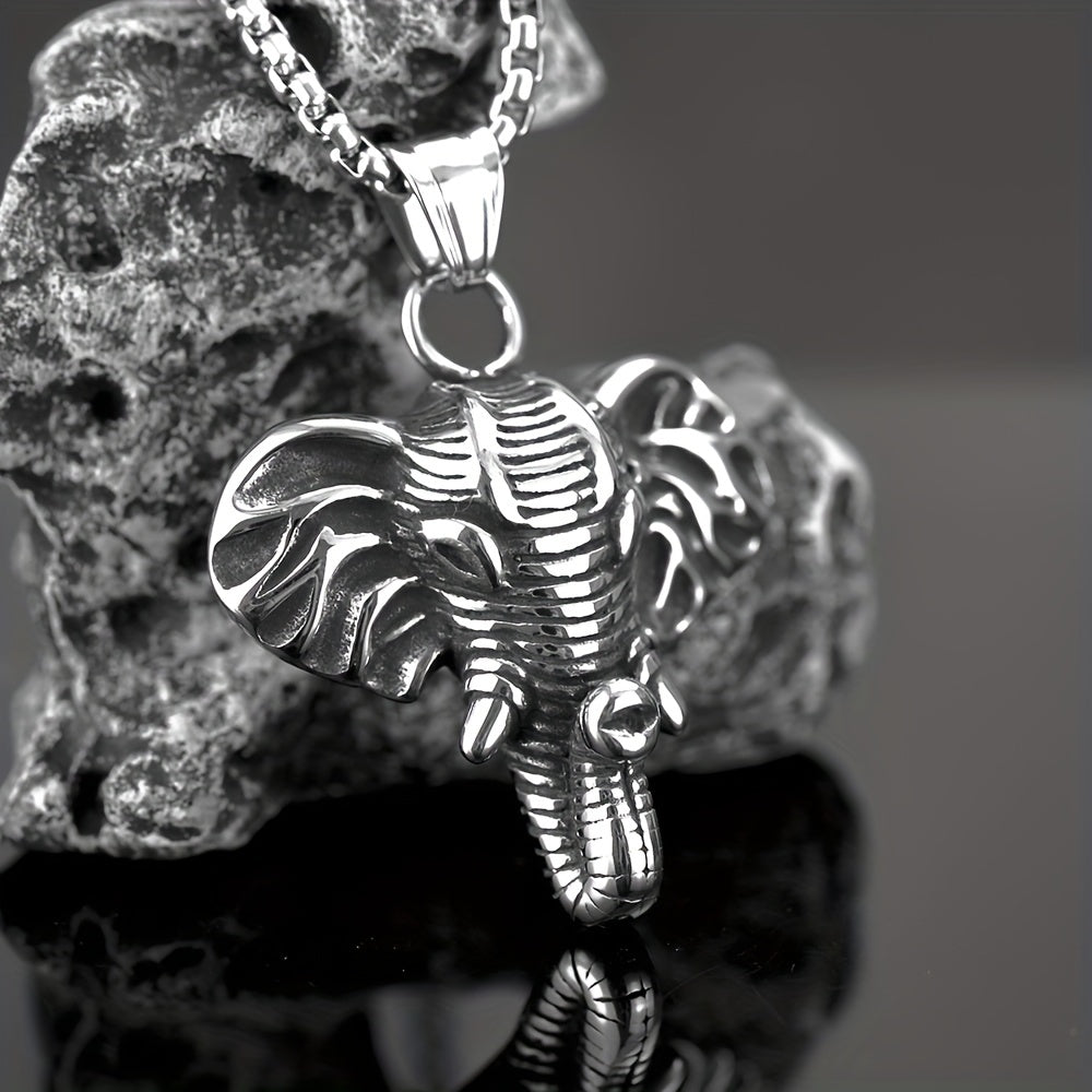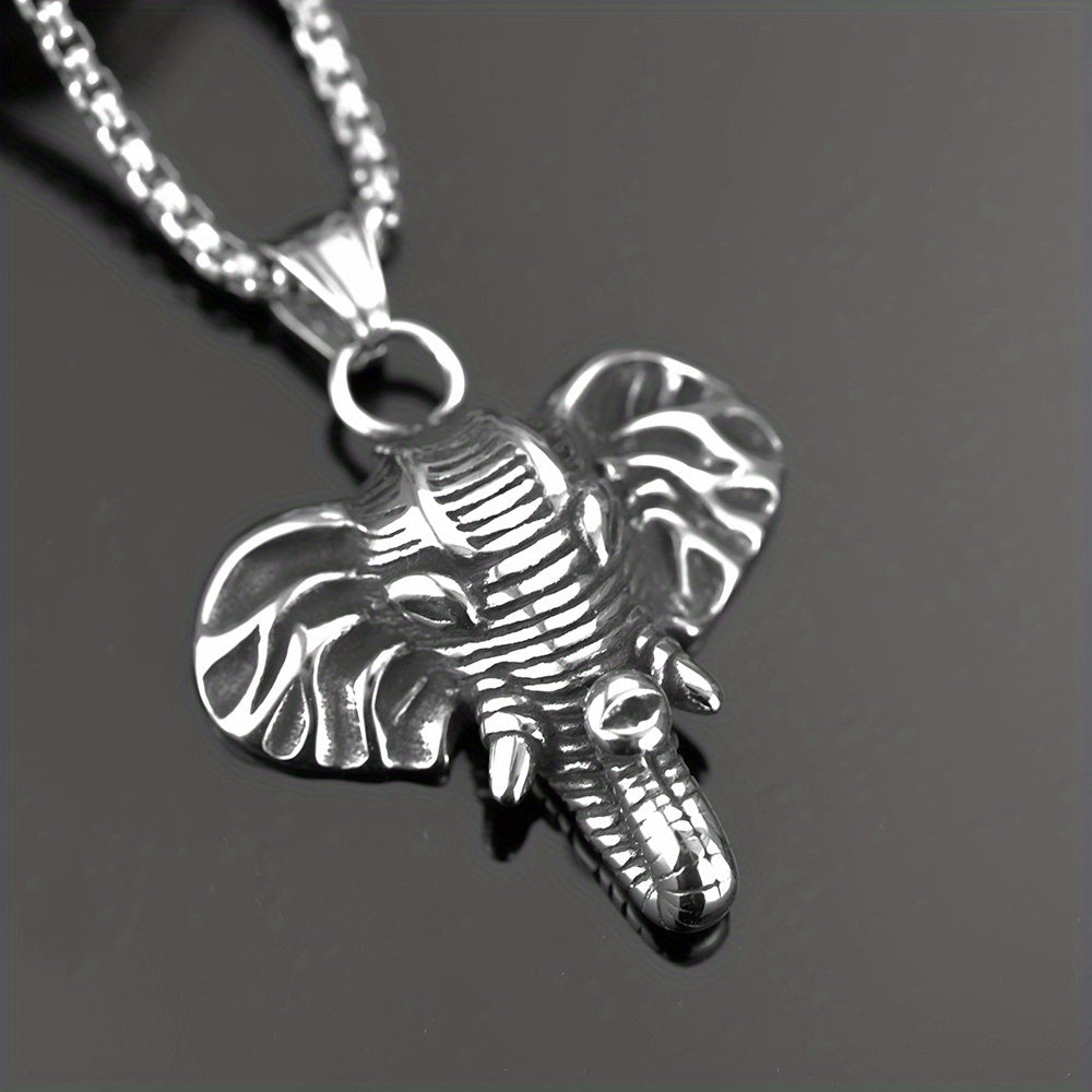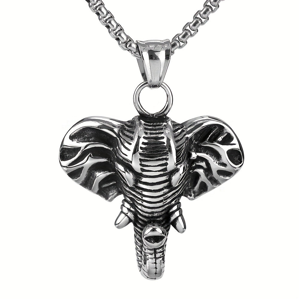 This stainless steel necklace features an elephant pendant, perfect for street hip hop style.