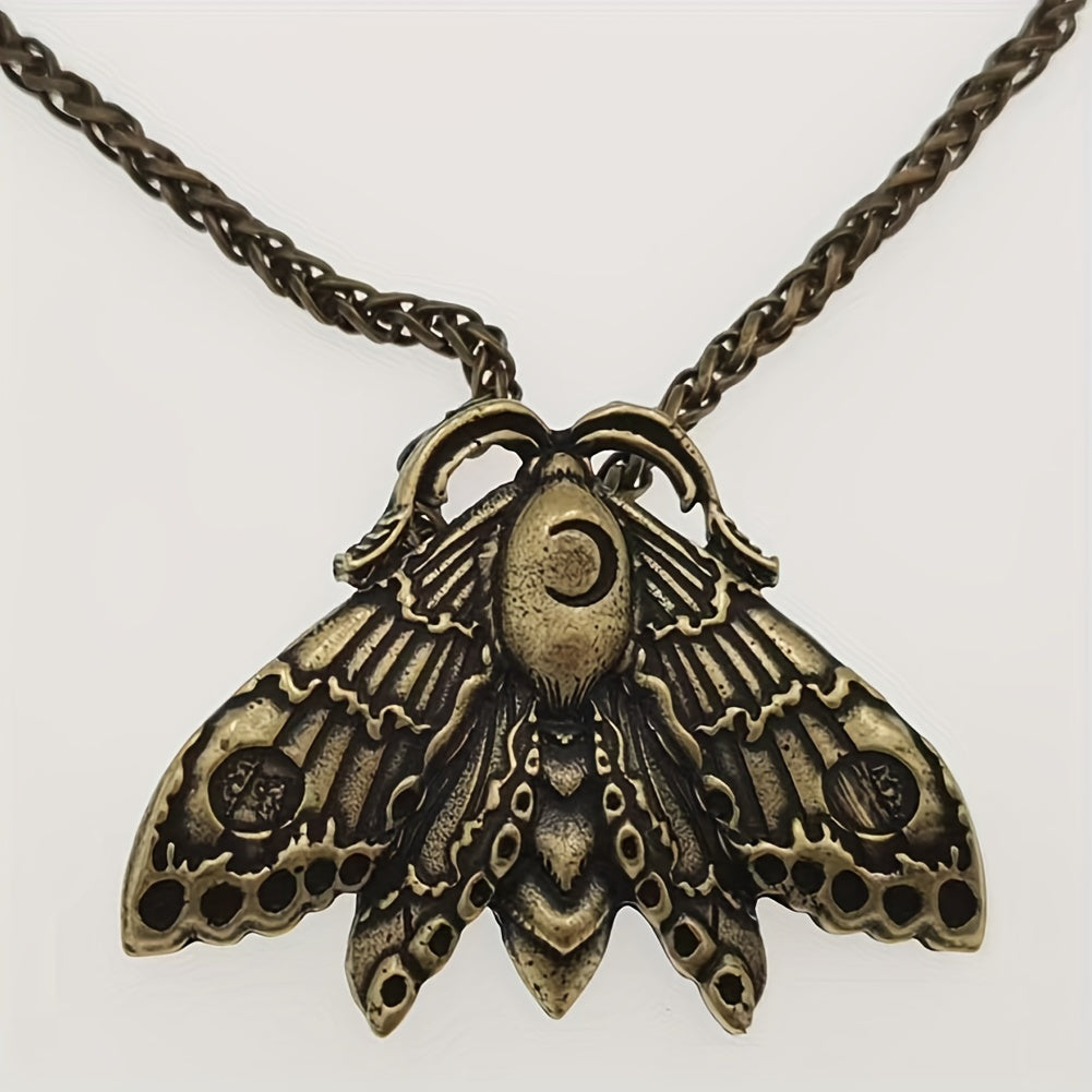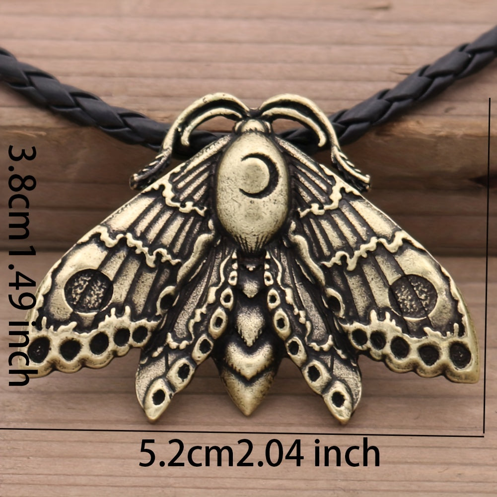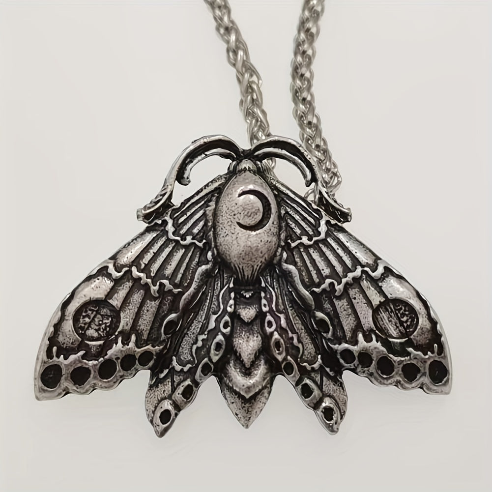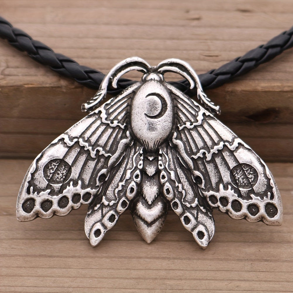 This unique men's necklace features a Valley Of Death Moth design with intricate details. The pendant also includes retro moon rune ornamentation for a distinctive look.