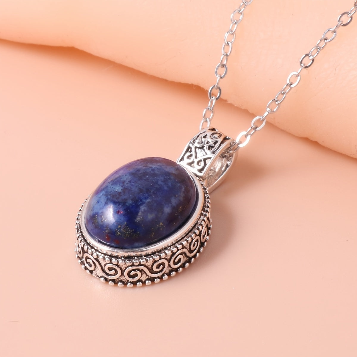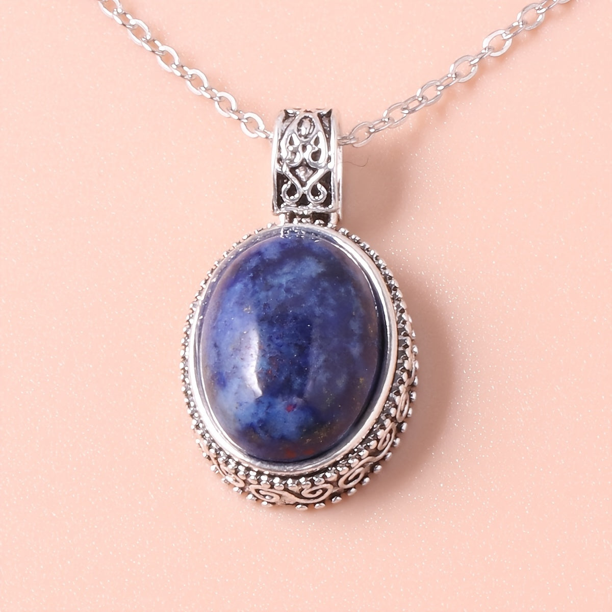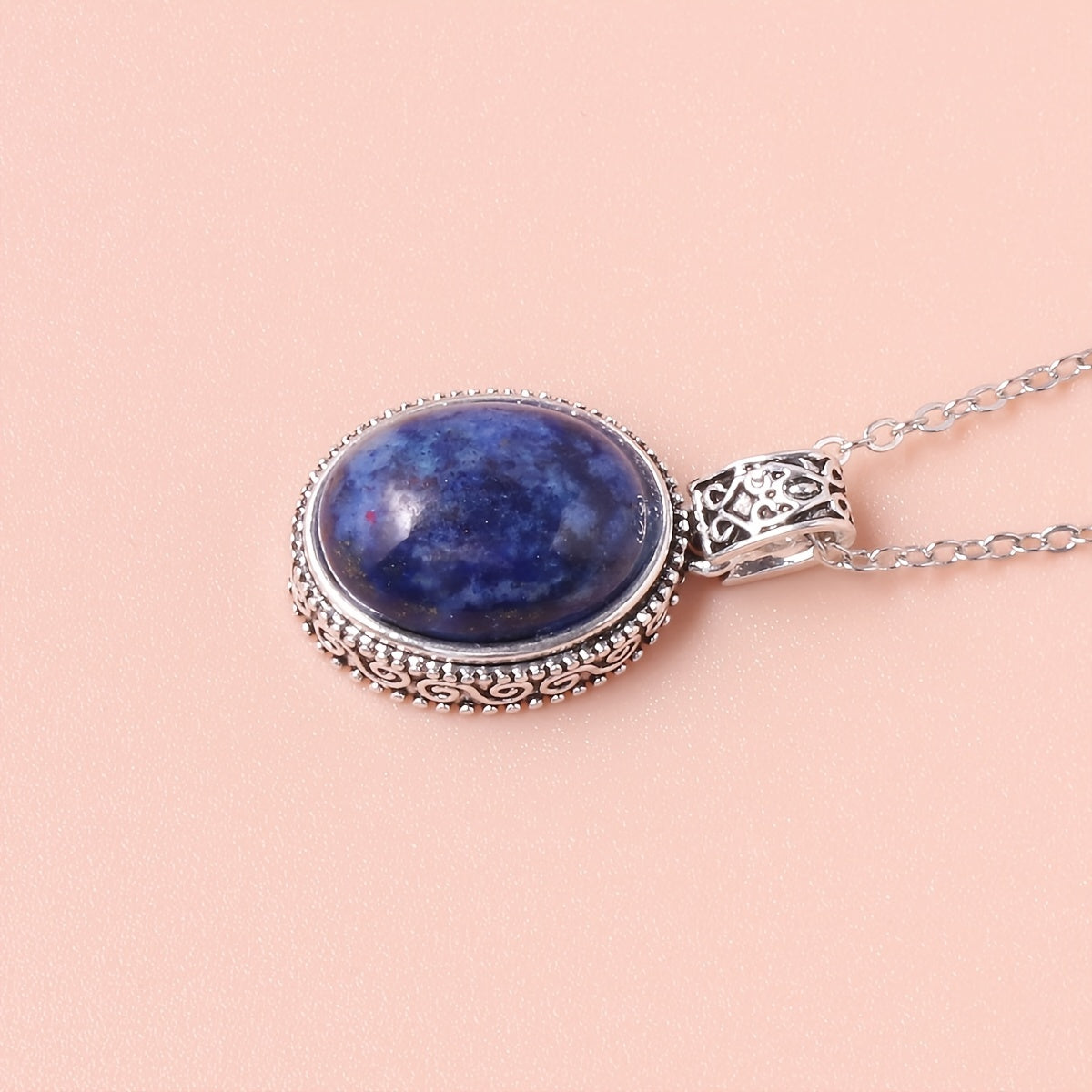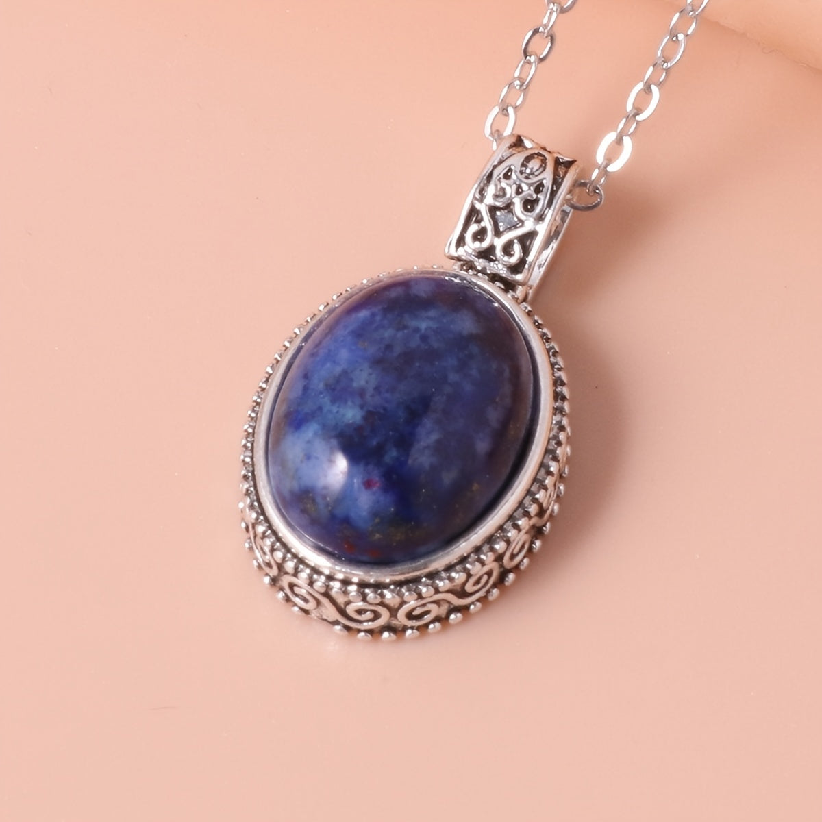 Elegant pendant necklace featuring an oval Lapis Lazuli stone, perfect for men's daily wear or special occasions.