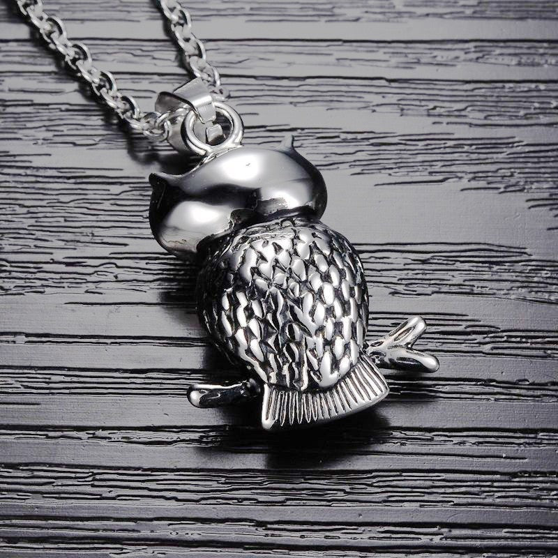 This vintage owl pendant necklace is a stylish accessory for men. Crafted from high-quality alloy, it features intricate details and a unique design.