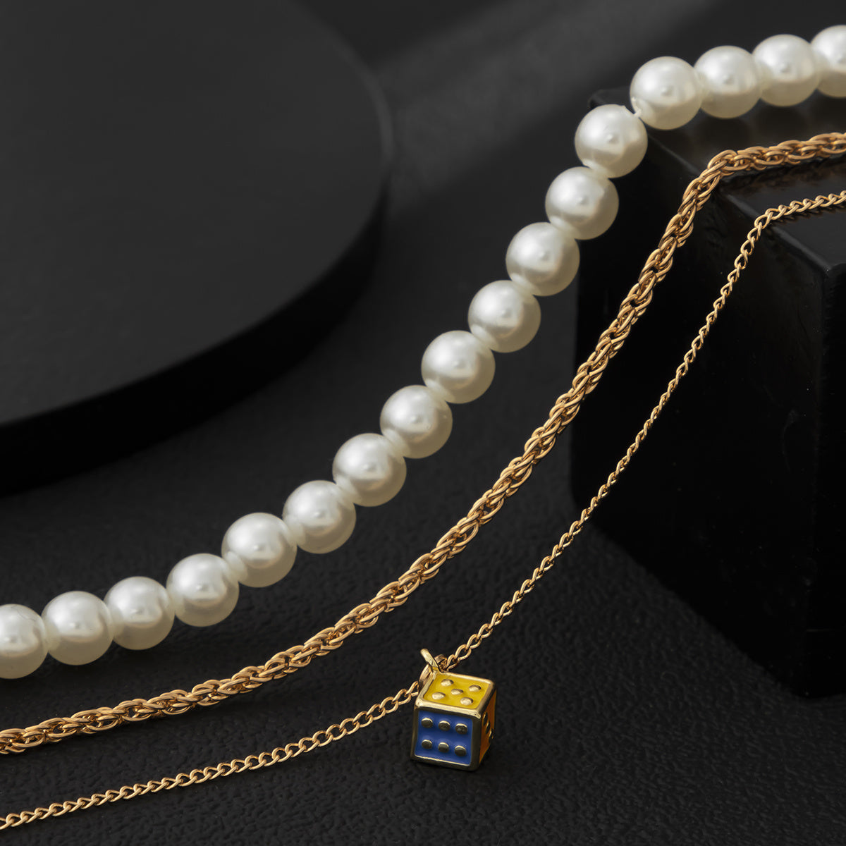 Add a touch of elegance to your outfit with this 3-piece men's pendant set featuring a classic pearl design. Perfect for business or casual occasions.