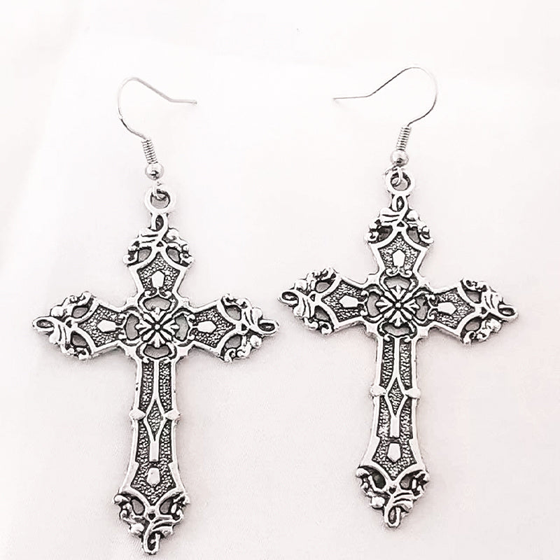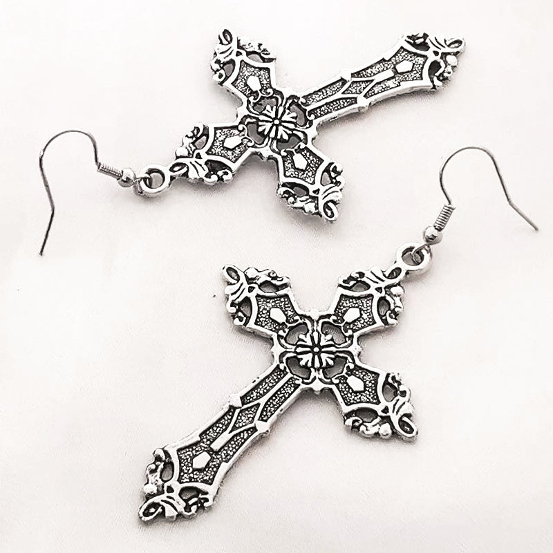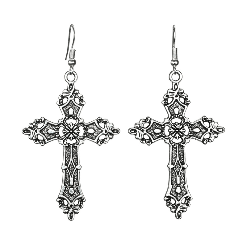 This set includes a pair of men's cross pendant earrings and a retro necklace, perfect for a Y2K style look.