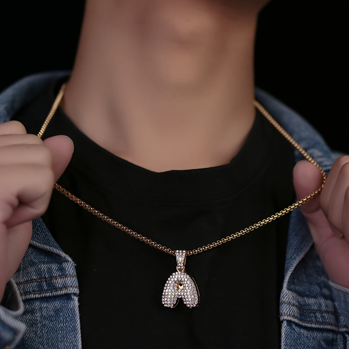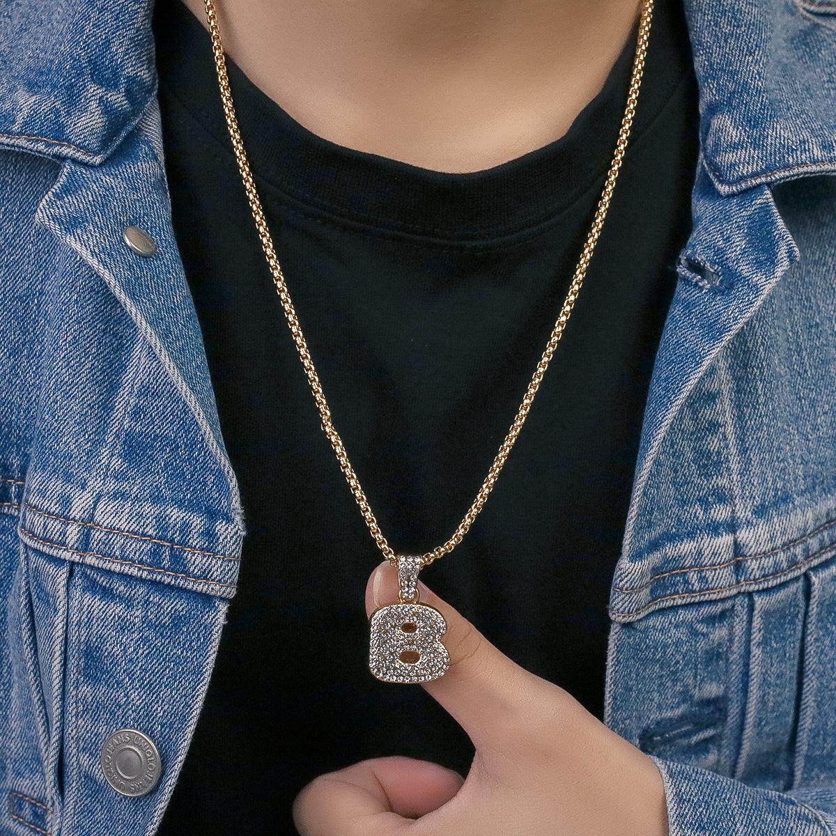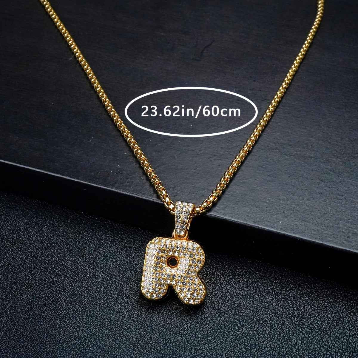 Men's Rhinestone Alphabet Pendant Necklace Golden Plated Chain for Men