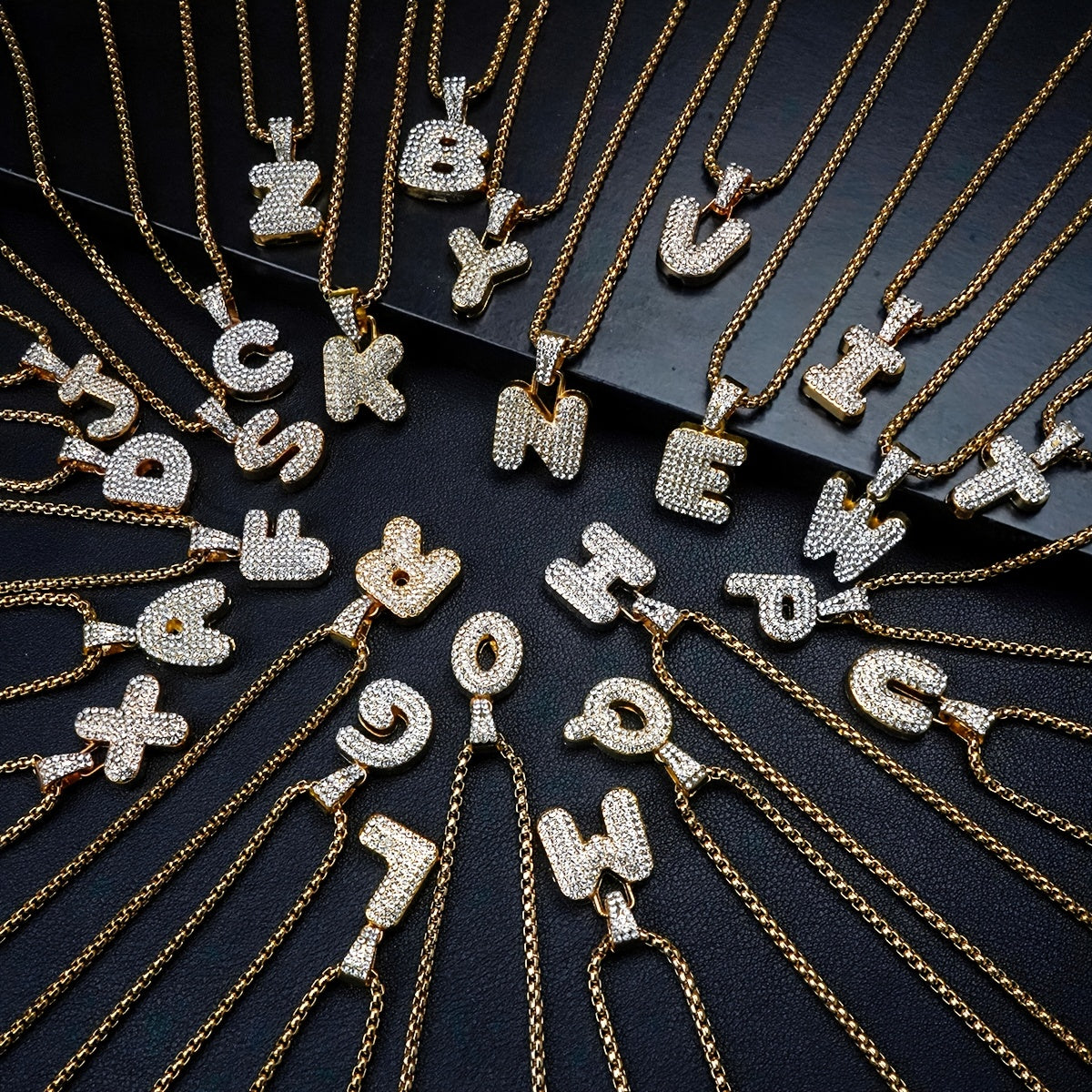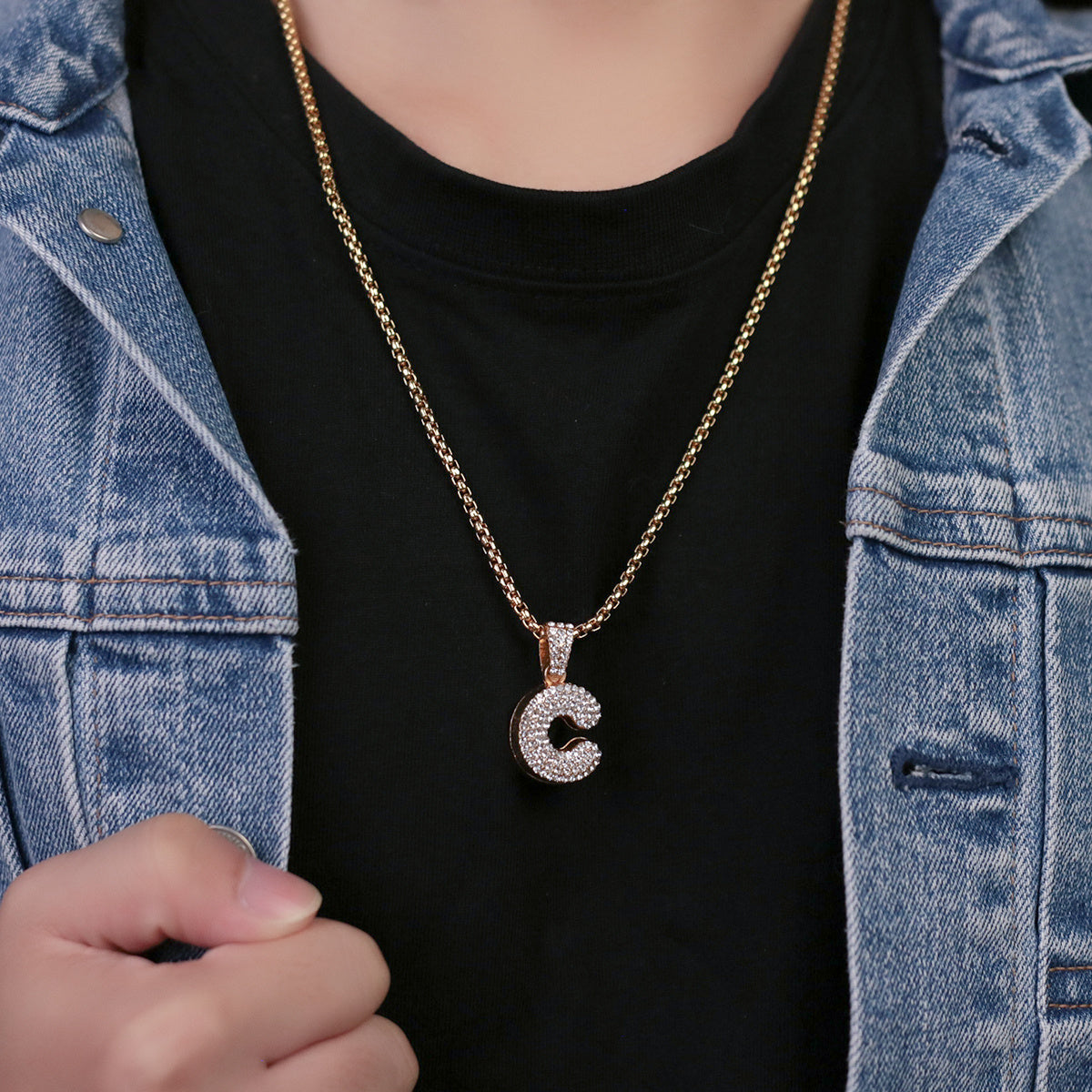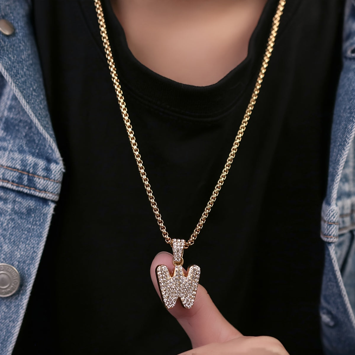 Men's Rhinestone Alphabet Pendant Necklace Golden Plated Chain for Men