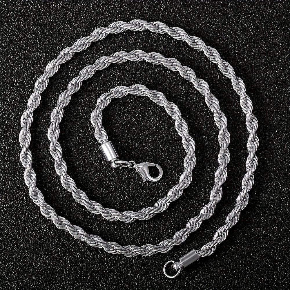 Men's Rope Long Necklace Stainless Steel Minimalist Twist Rope Chain Necklace
