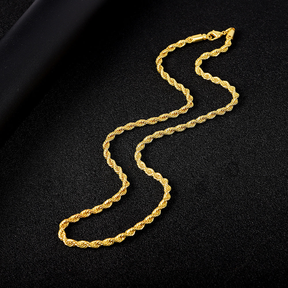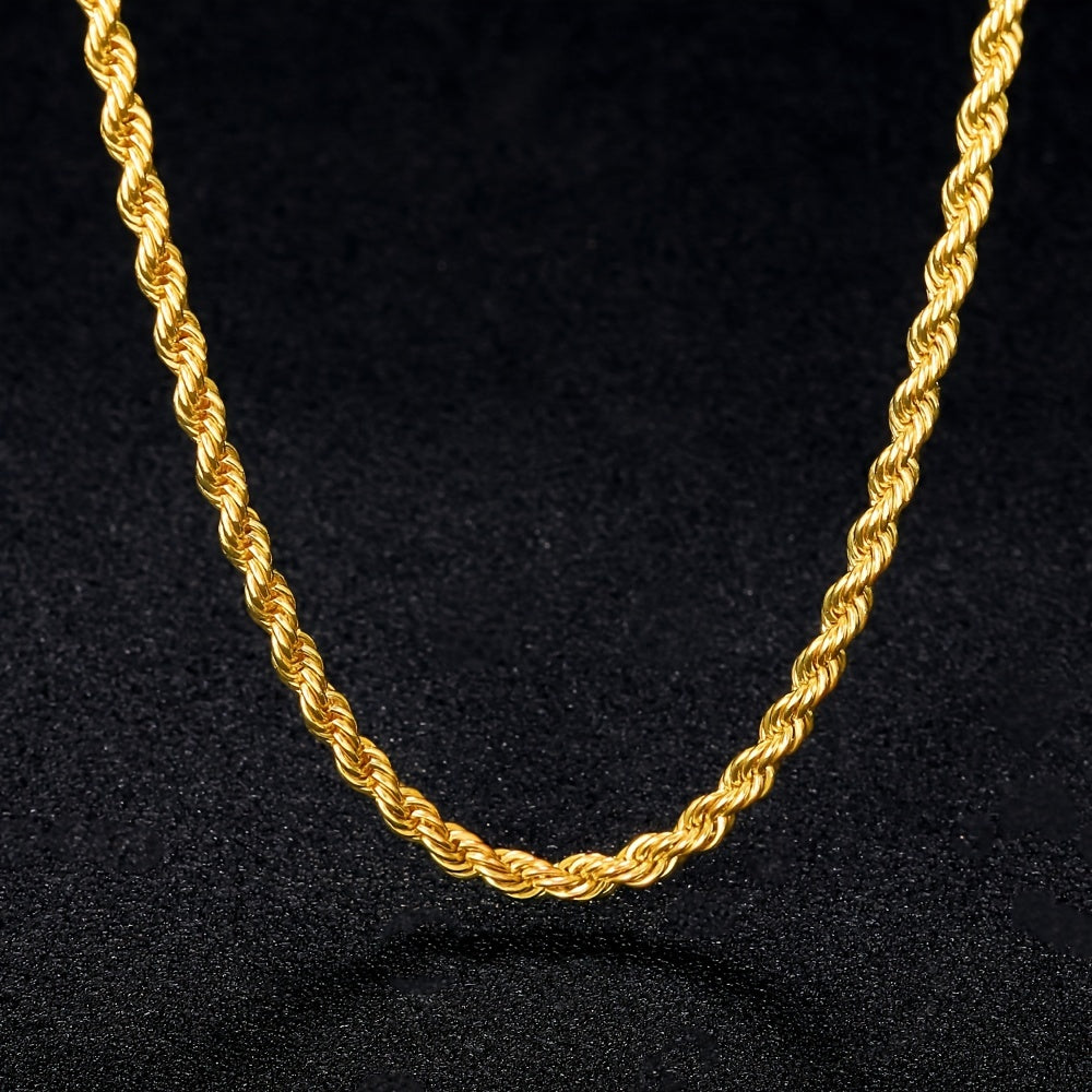 This stainless steel long necklace features a minimalist twist rope design in golden and silver colors. A stylish accessory for men.