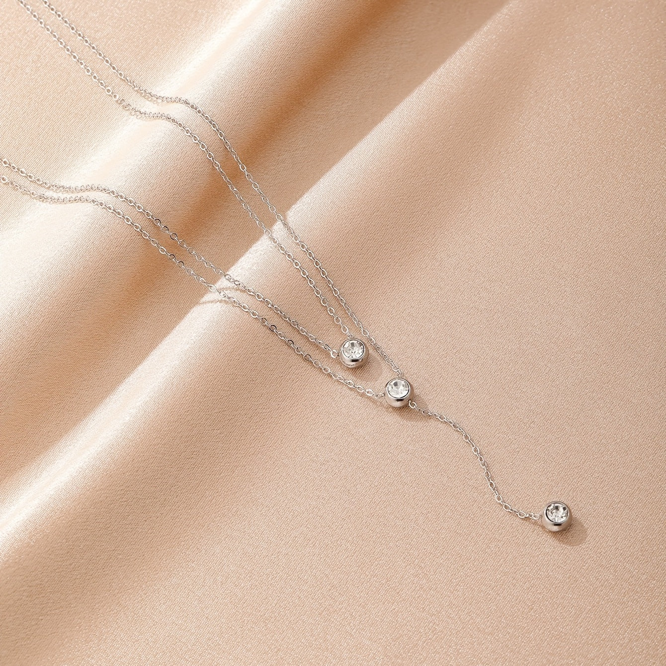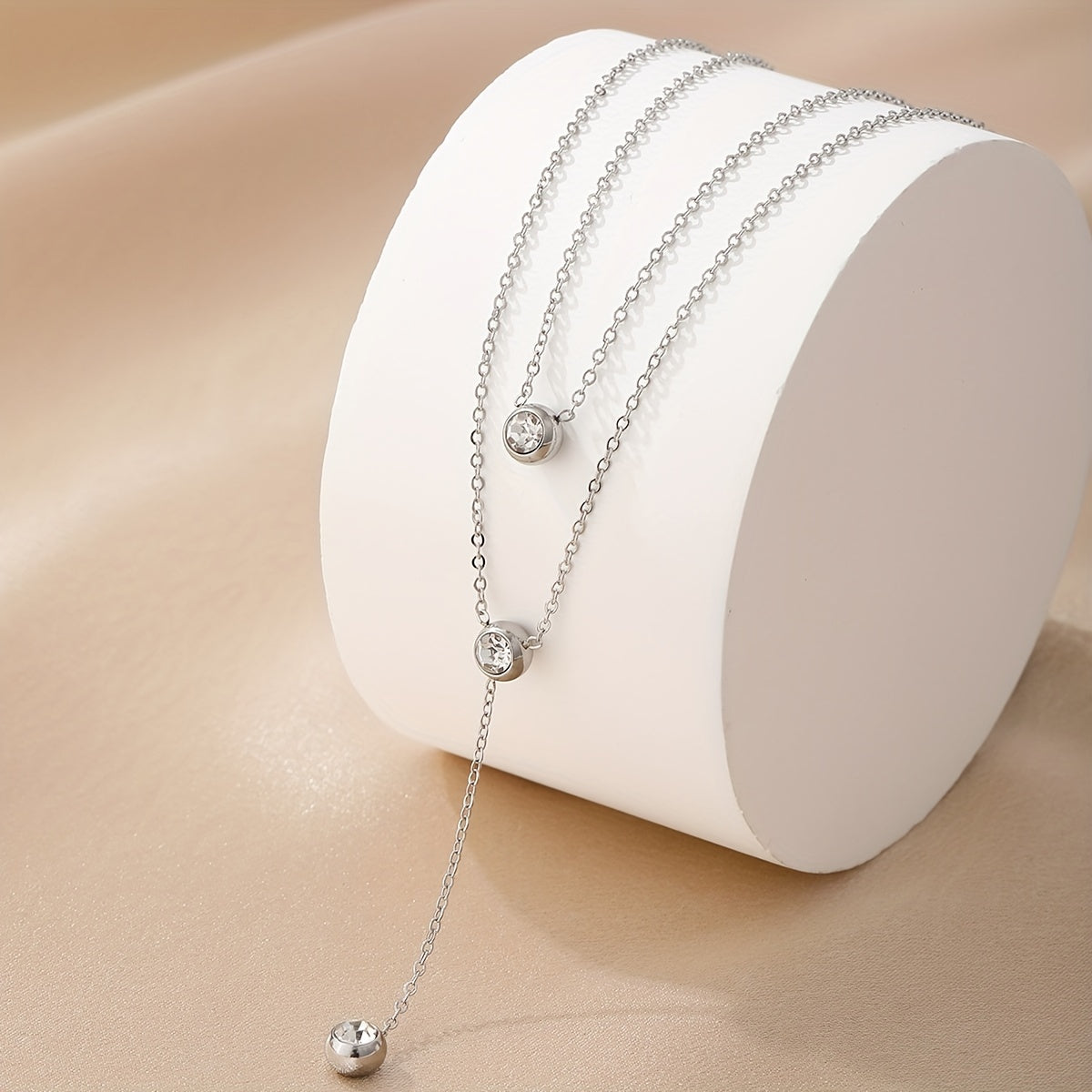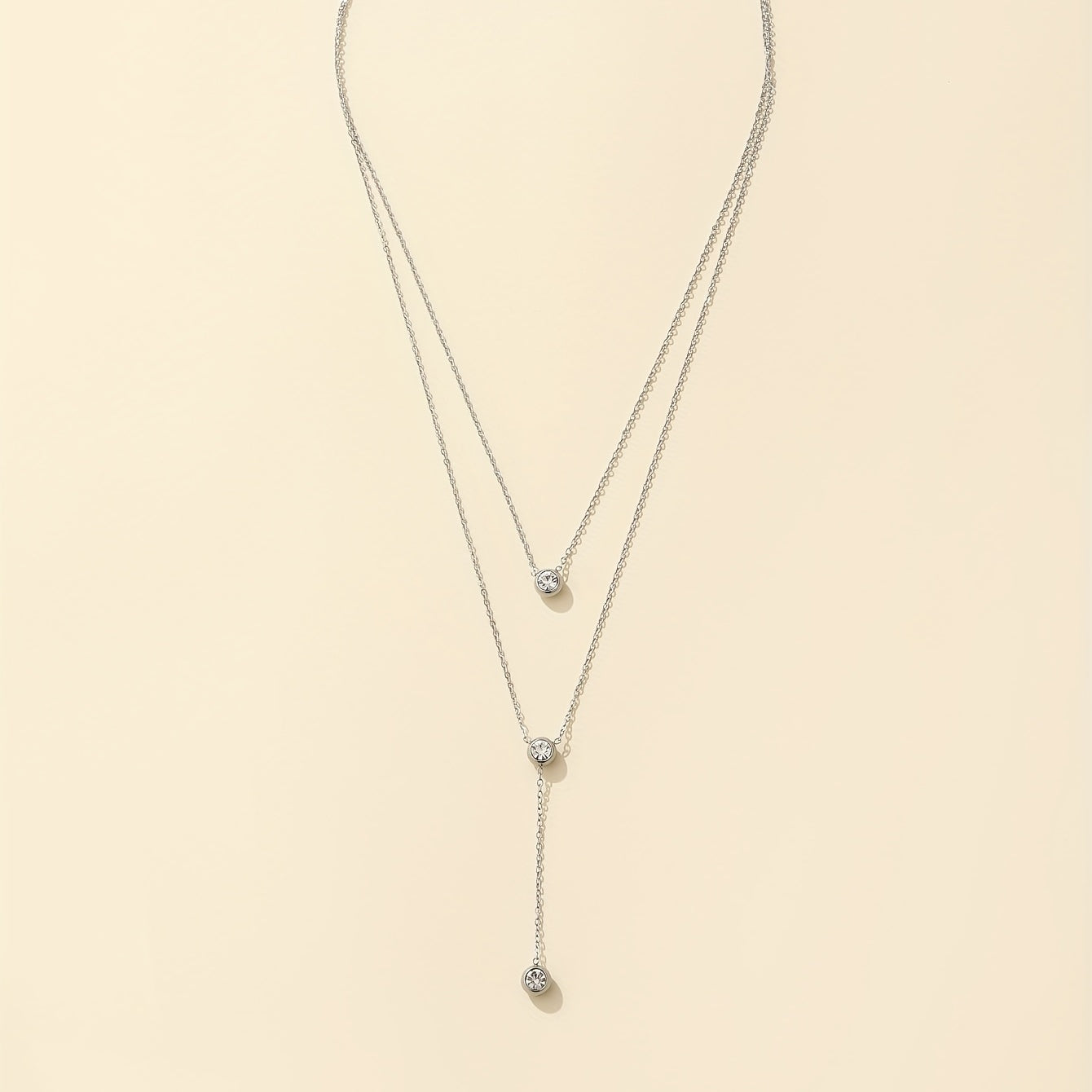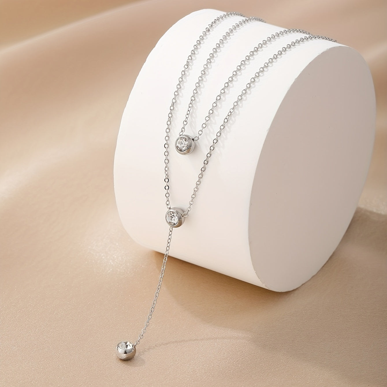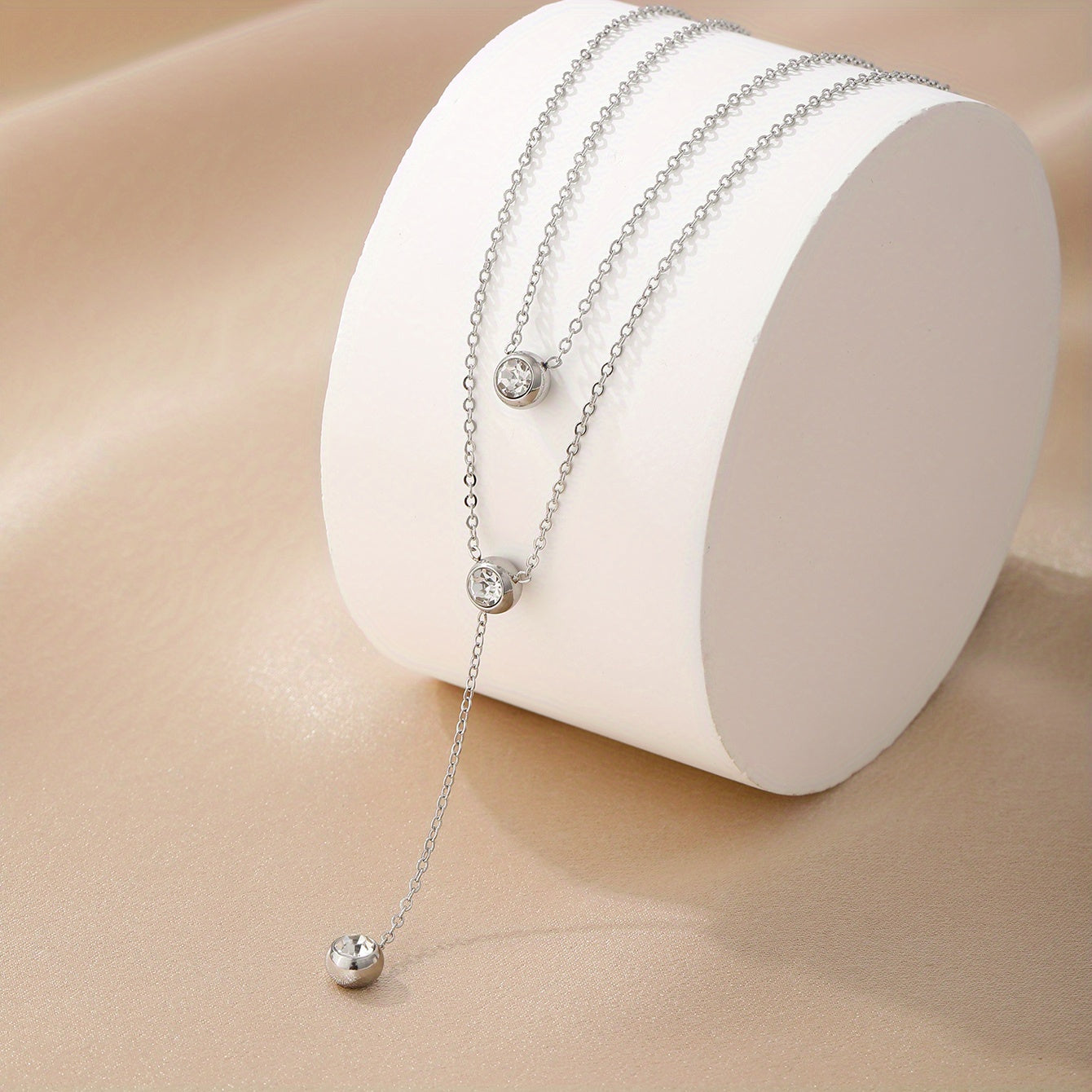 Elegant stainless steel necklace with double-layered zirconia design. Ideal for men, couples, or women. Versatile gift for any occasion.