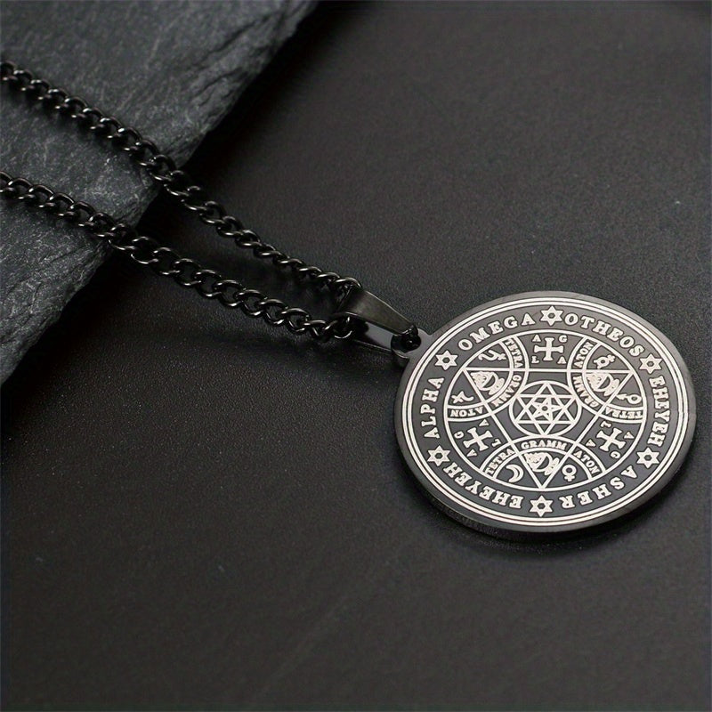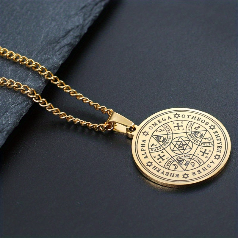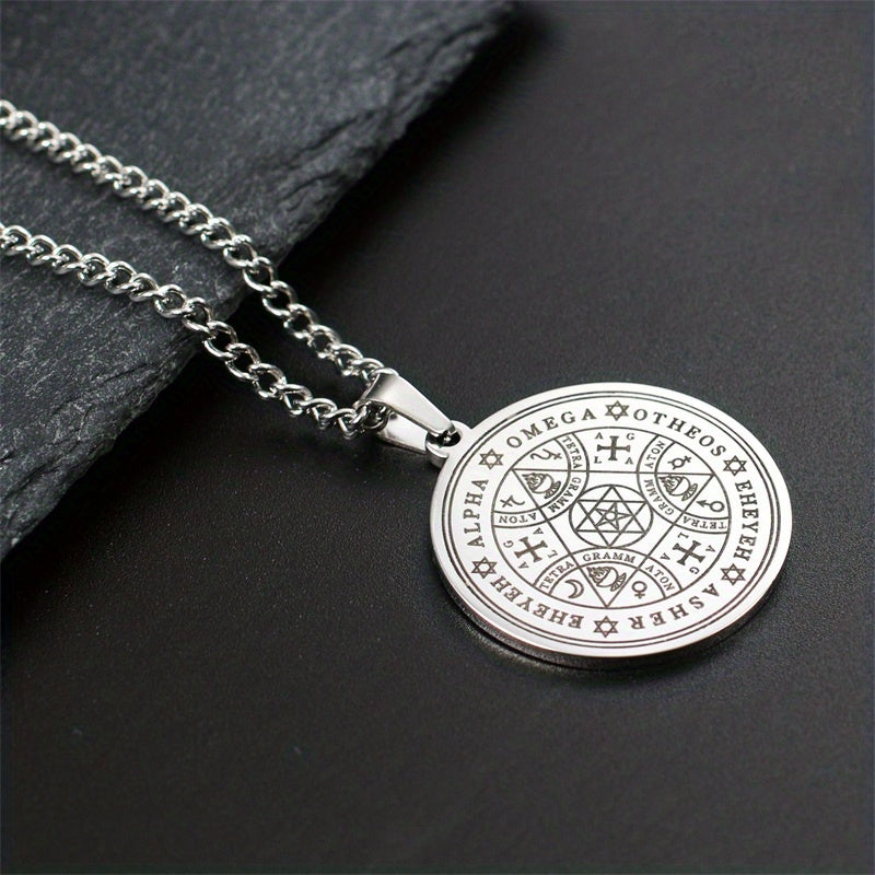 This retro pendant necklace features a lucky symbol pattern, perfect for adding a touch of mystique to your look.