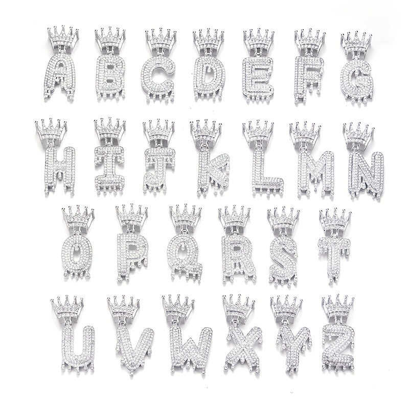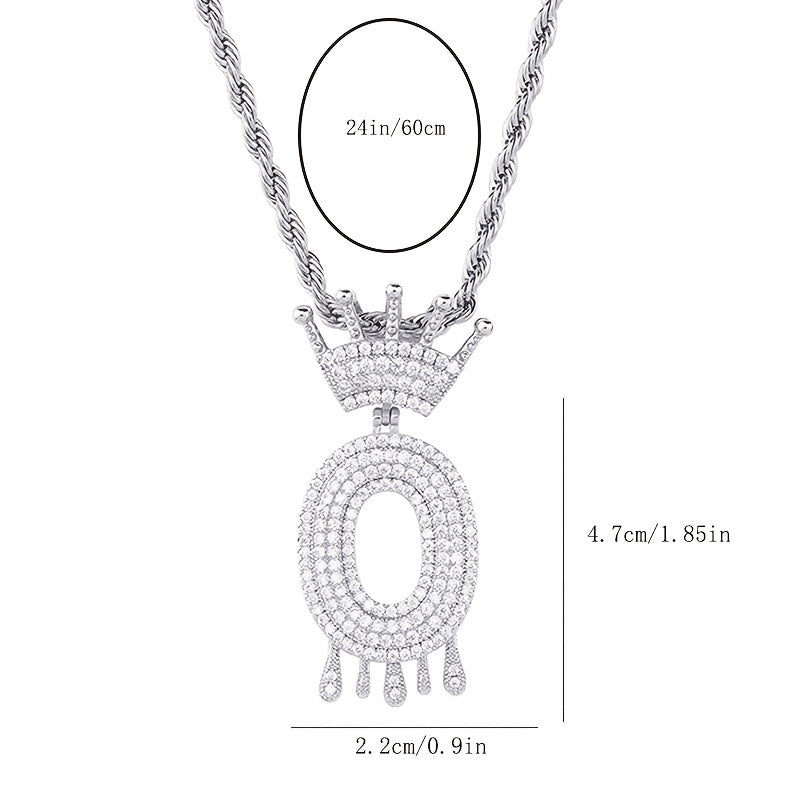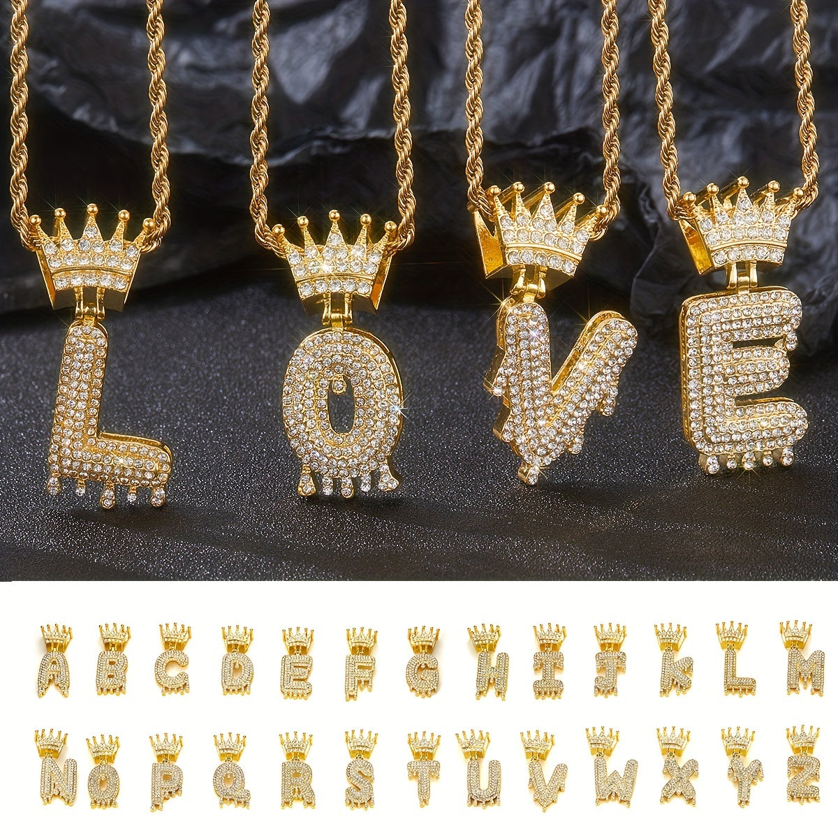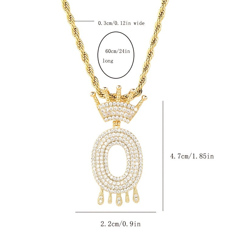 This stylish men's stainless steel necklace features a waterproof crown initial pendant on a rope chain.