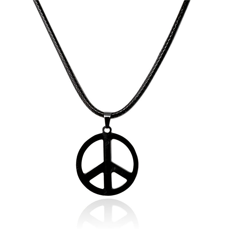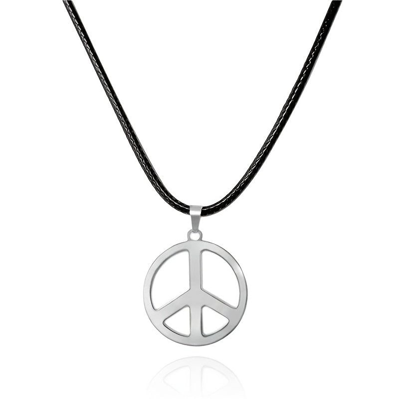 This stylish necklace features a peace symbol pendant on a leather rope. Perfect for men who appreciate peace symbols.