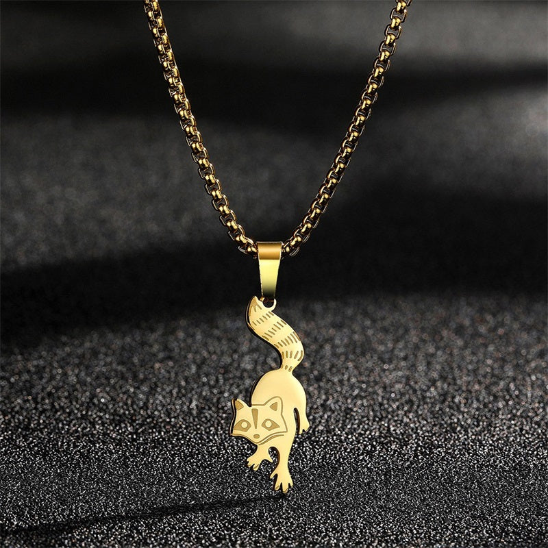 • Stainless steel raccoon pendant necklace for men