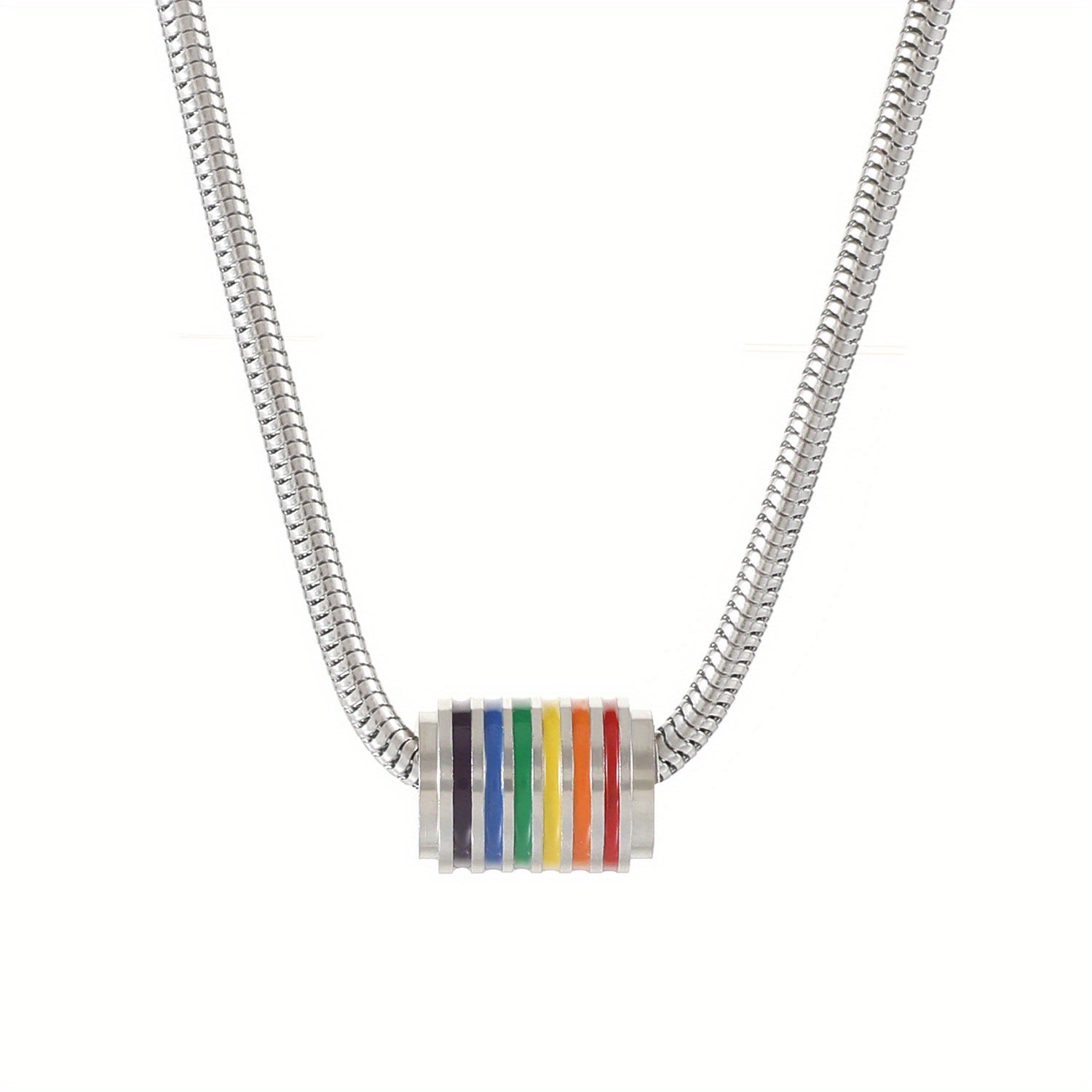 This stainless steel necklace and bracelet set features a trendy rainbow stitching design, perfect for a hip hop and stylish look.
