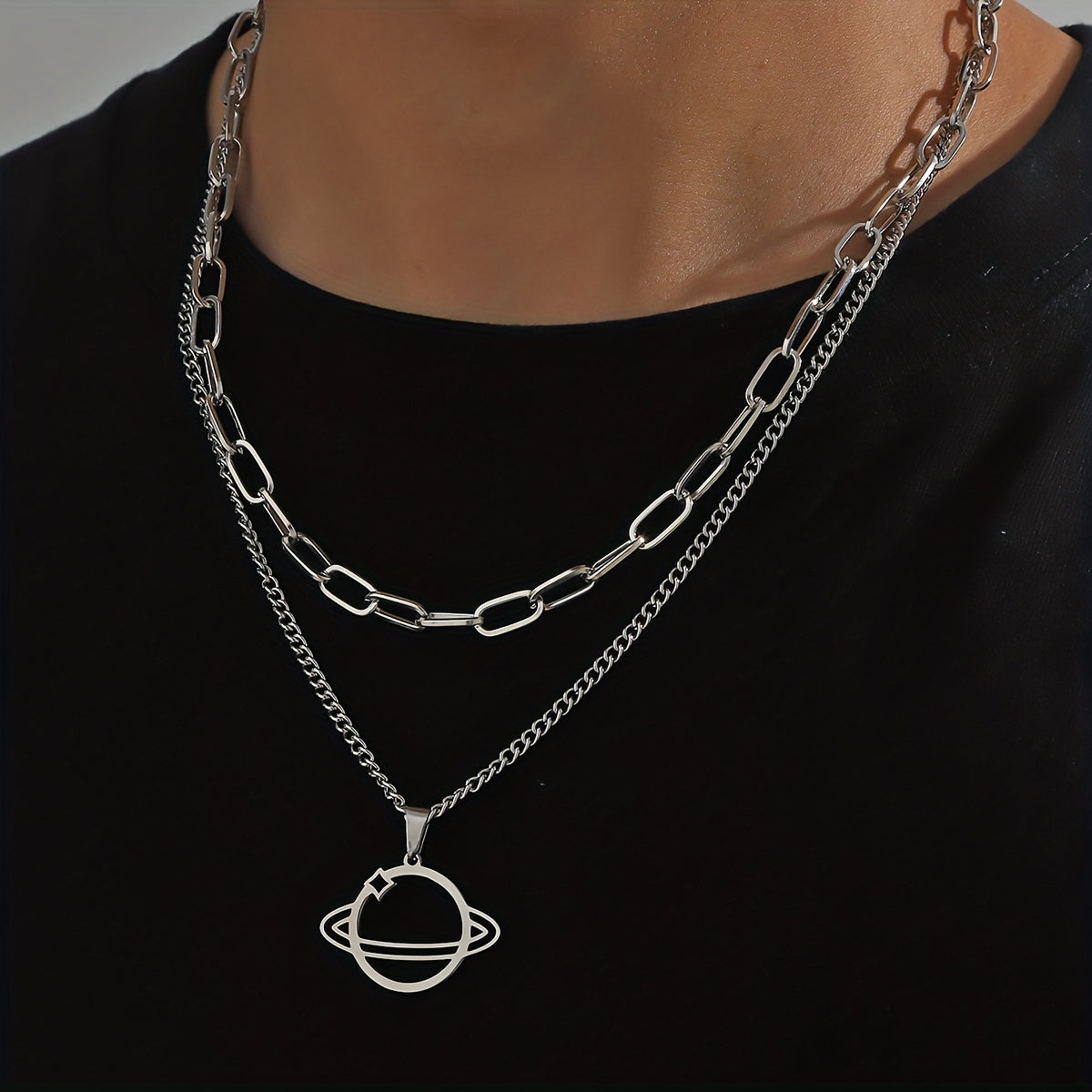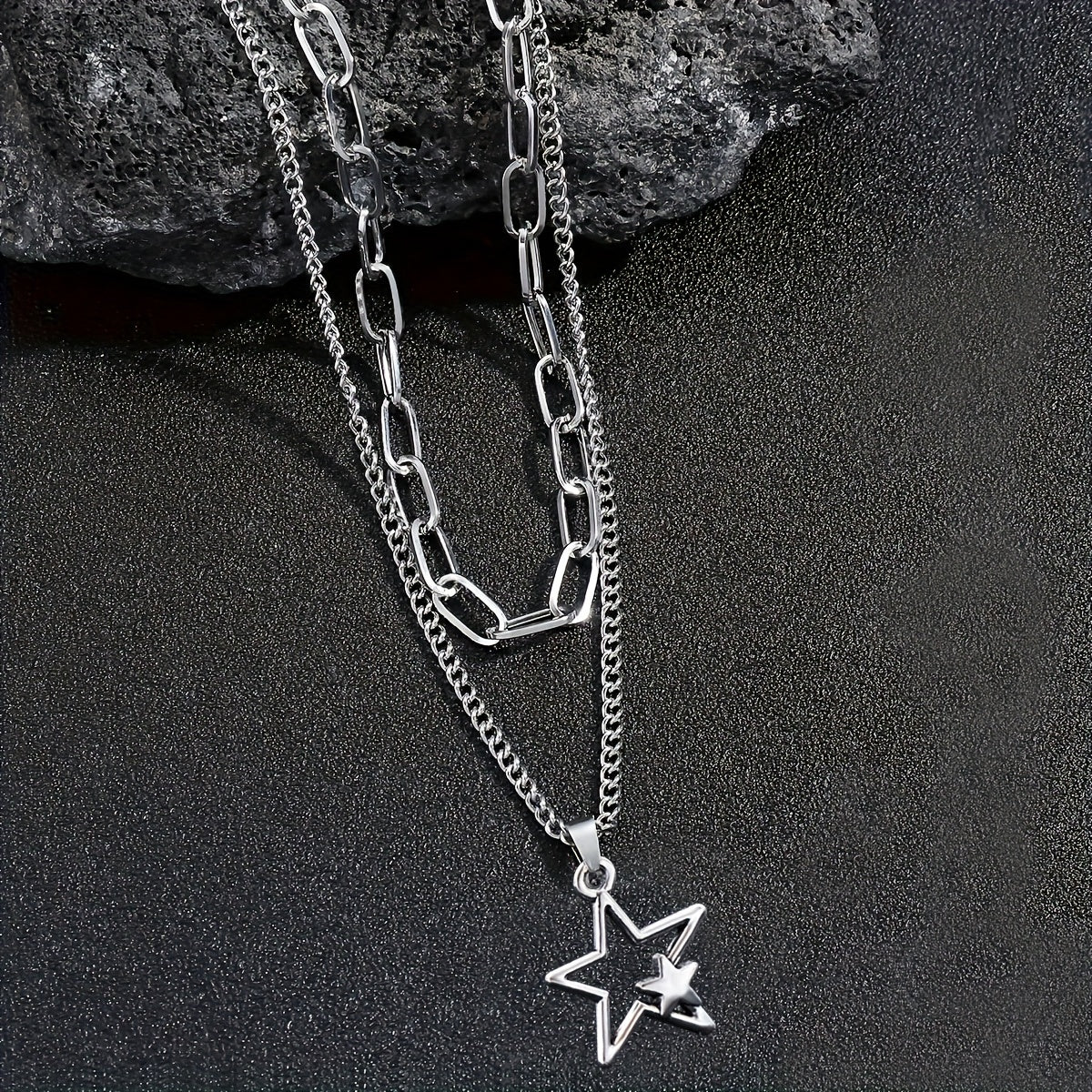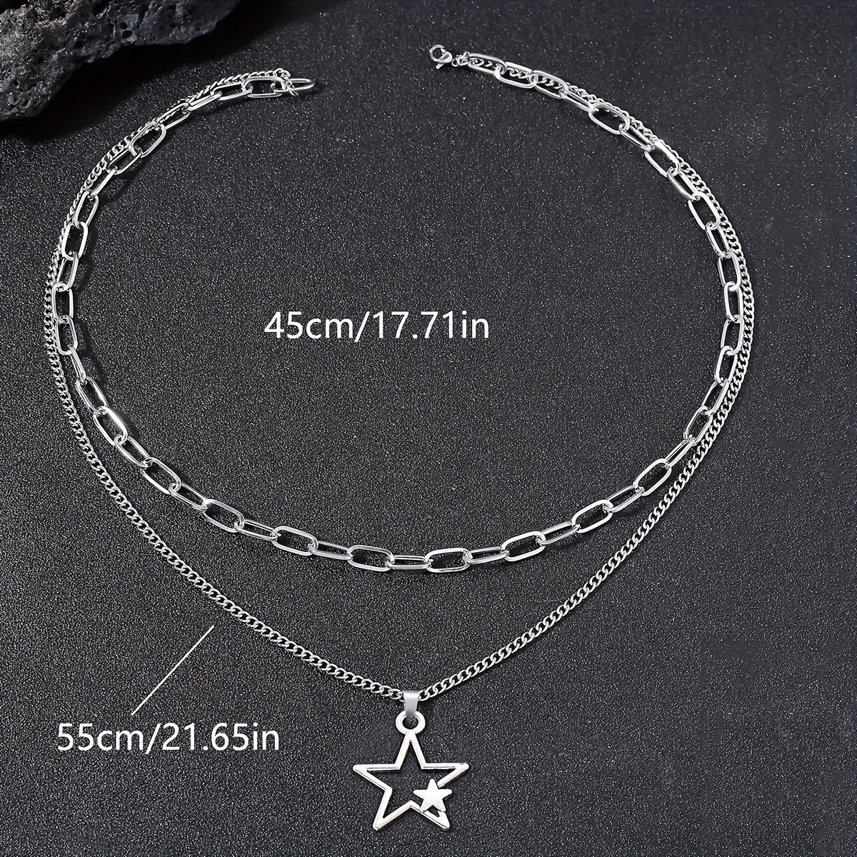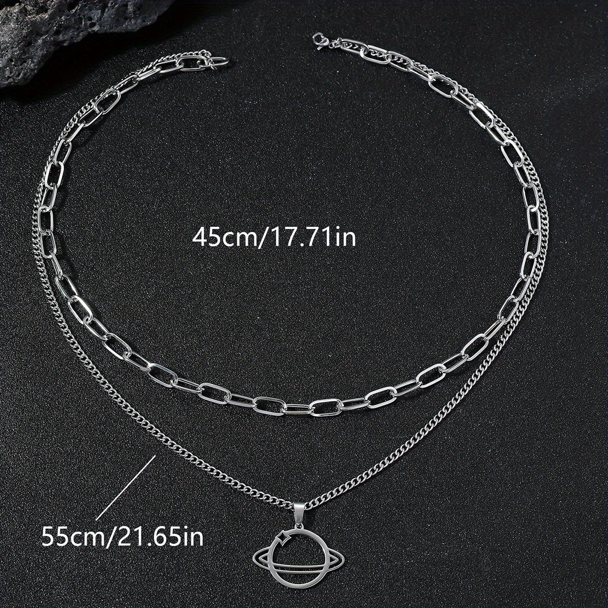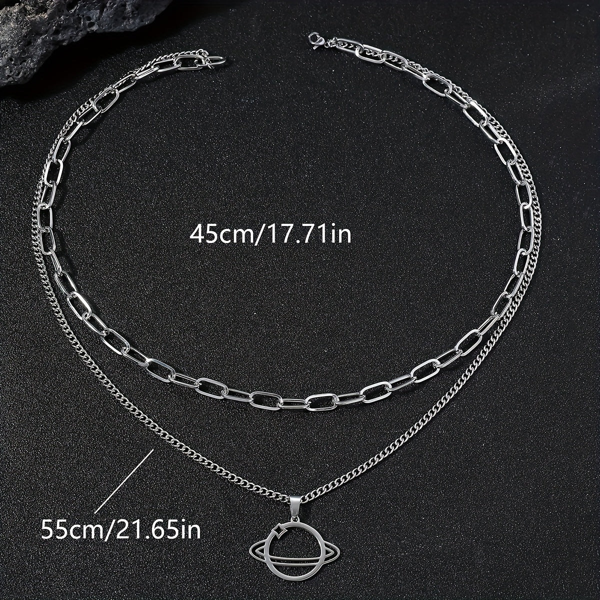 This stylish necklace is made of stainless steel and features an inlaid rhinestone design. Perfect for men, couples, or women, it adds a fashionable touch to any outfit.