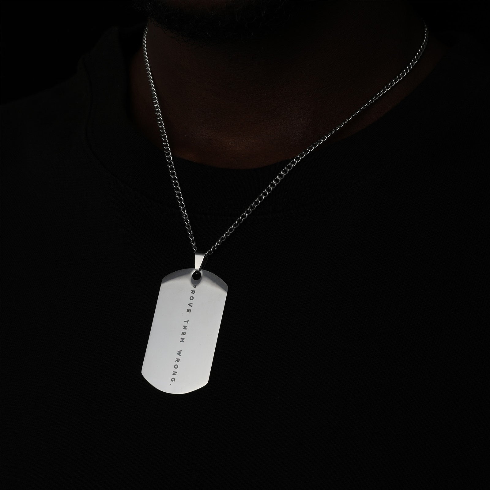 Stylish stainless steel shield pendant necklace for men, adding a bold and masculine touch to any outfit.