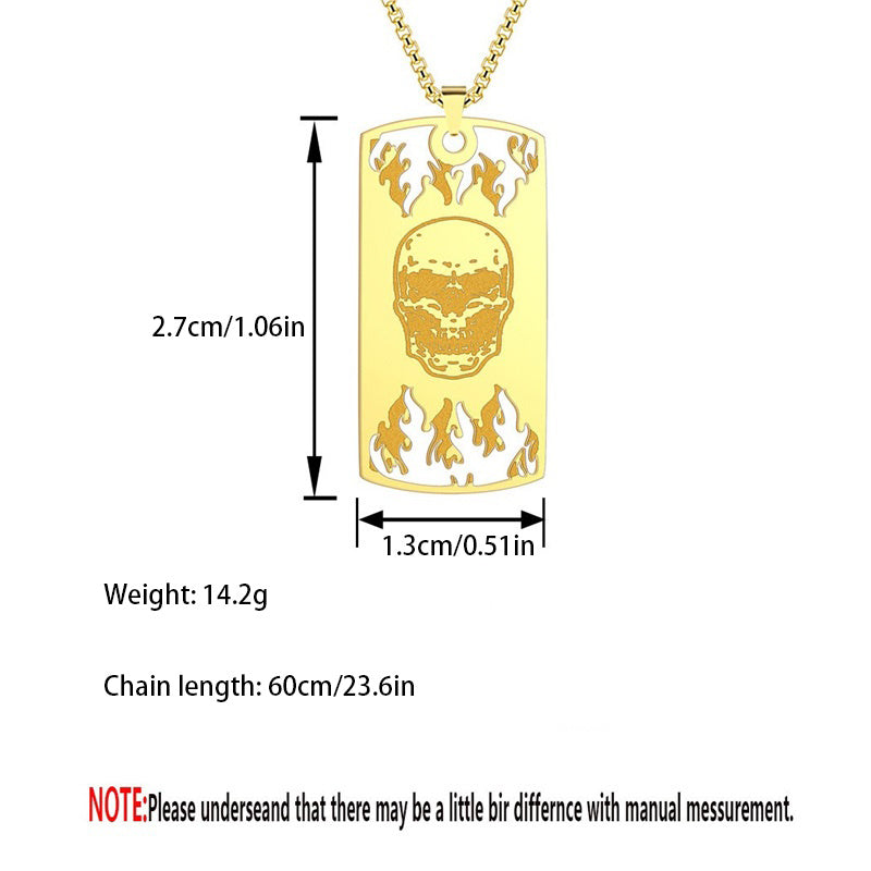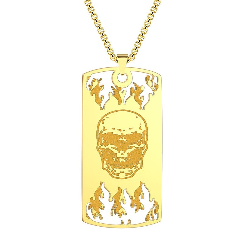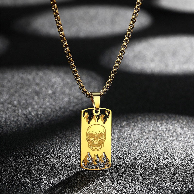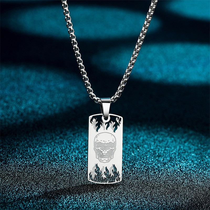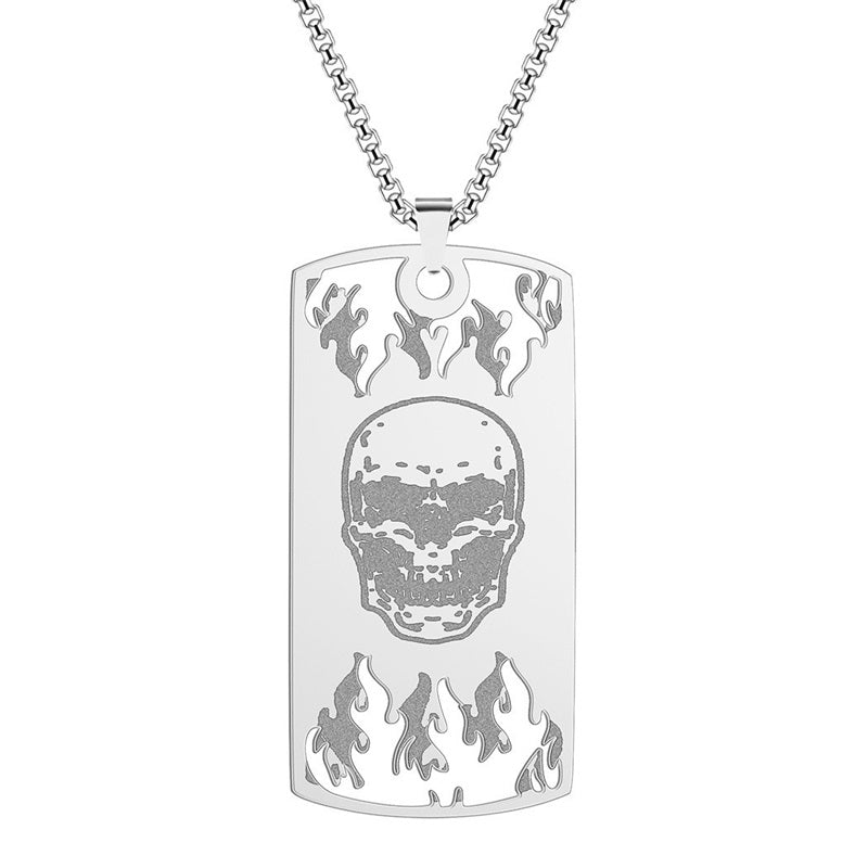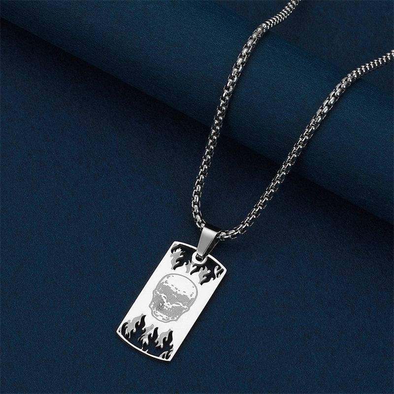 Men's Stainless Steel Skull Flame Metal Pendant Necklace