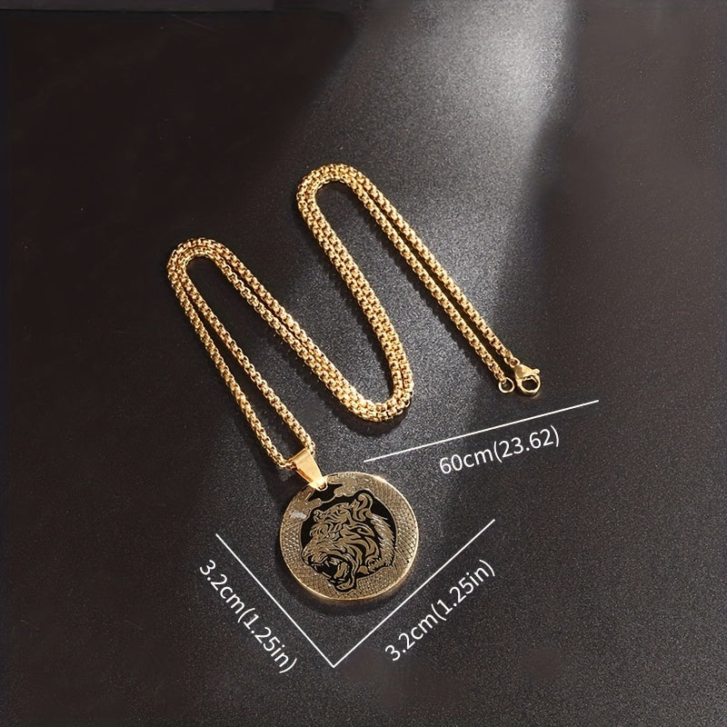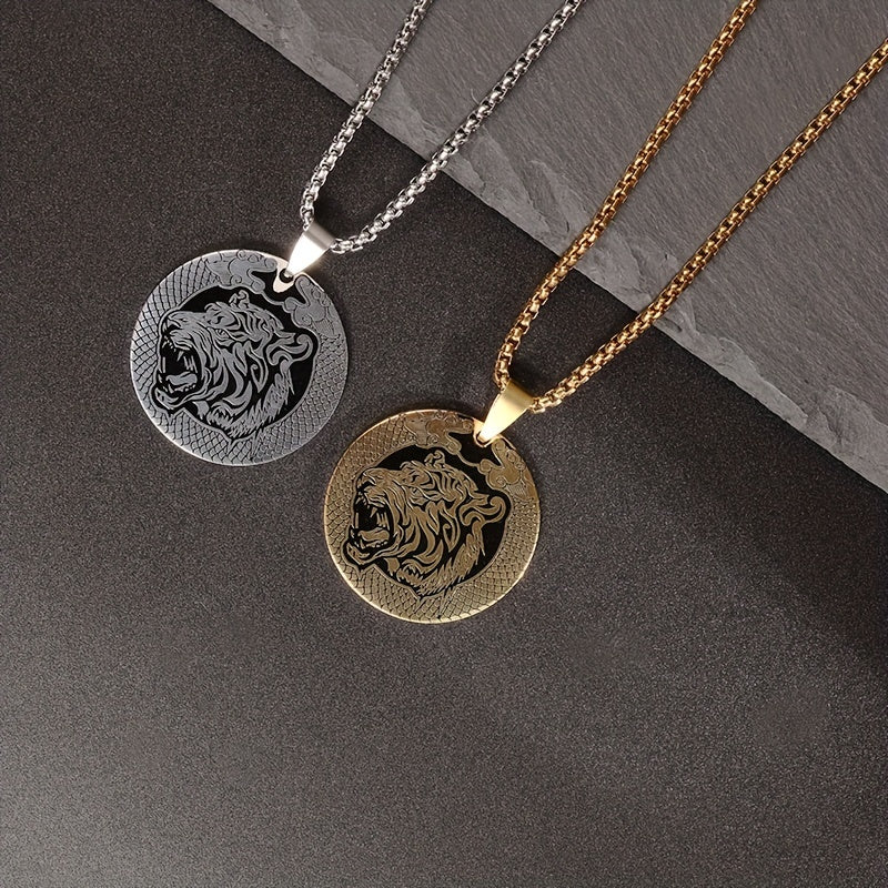 This unique pendant necklace features a stylish tiger head design, making it a perfect accessory for daily wear. Crafted from durable stainless steel, this necklace is a great gift idea for men.
