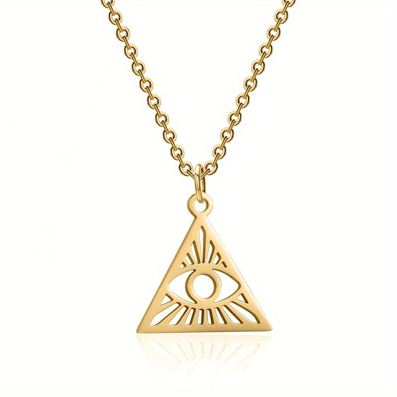 Stay trendy with this hip hop retro pendant necklace featuring a hollow triangle and devil's eye design. Made of high-quality stainless steel, perfect for everyday wear.