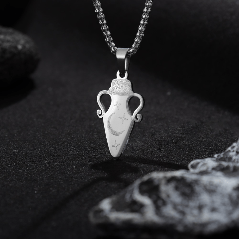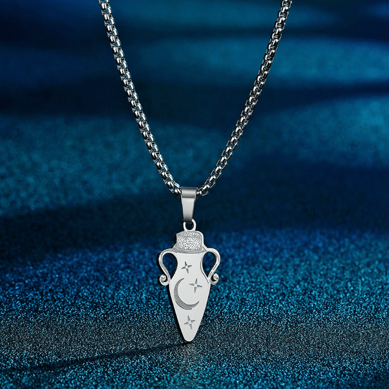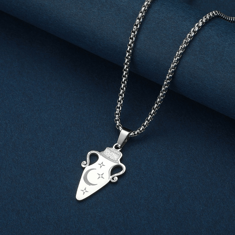 Enhance your look with this stylish men's necklace featuring a stainless steel wishing bottle pendant.