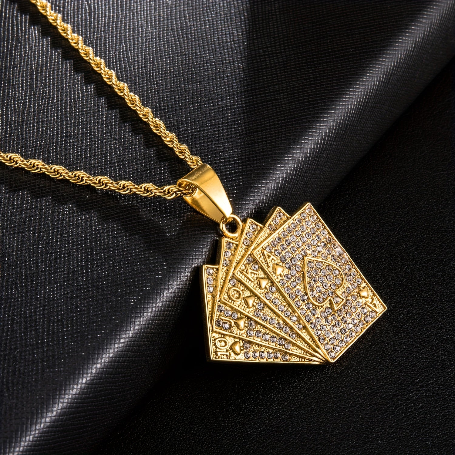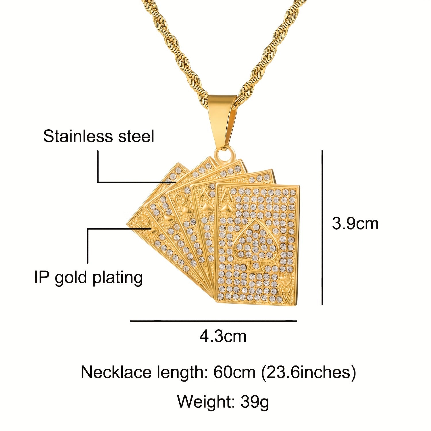 This necklace features a full set of playing cards design with zircon pendant, making it a stylish hip hop accessory for men.