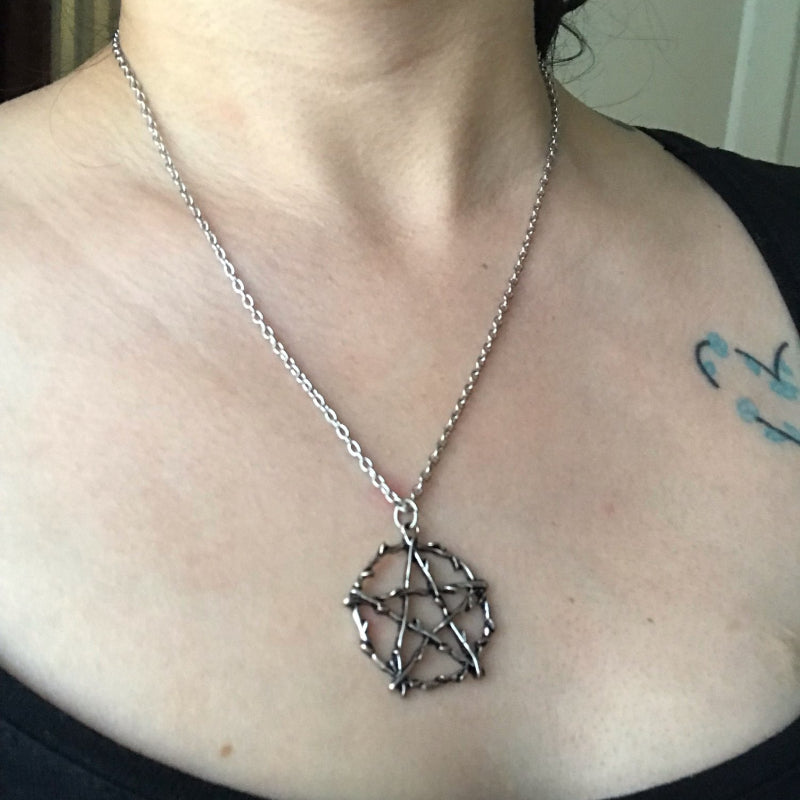 This striking pendant necklace features a five-point star design, perfect for adding a touch of gothic punk style to your look. Ideal for parties or everyday wear, this necklace also makes a great gift for a special man in your life.