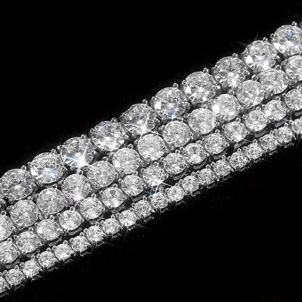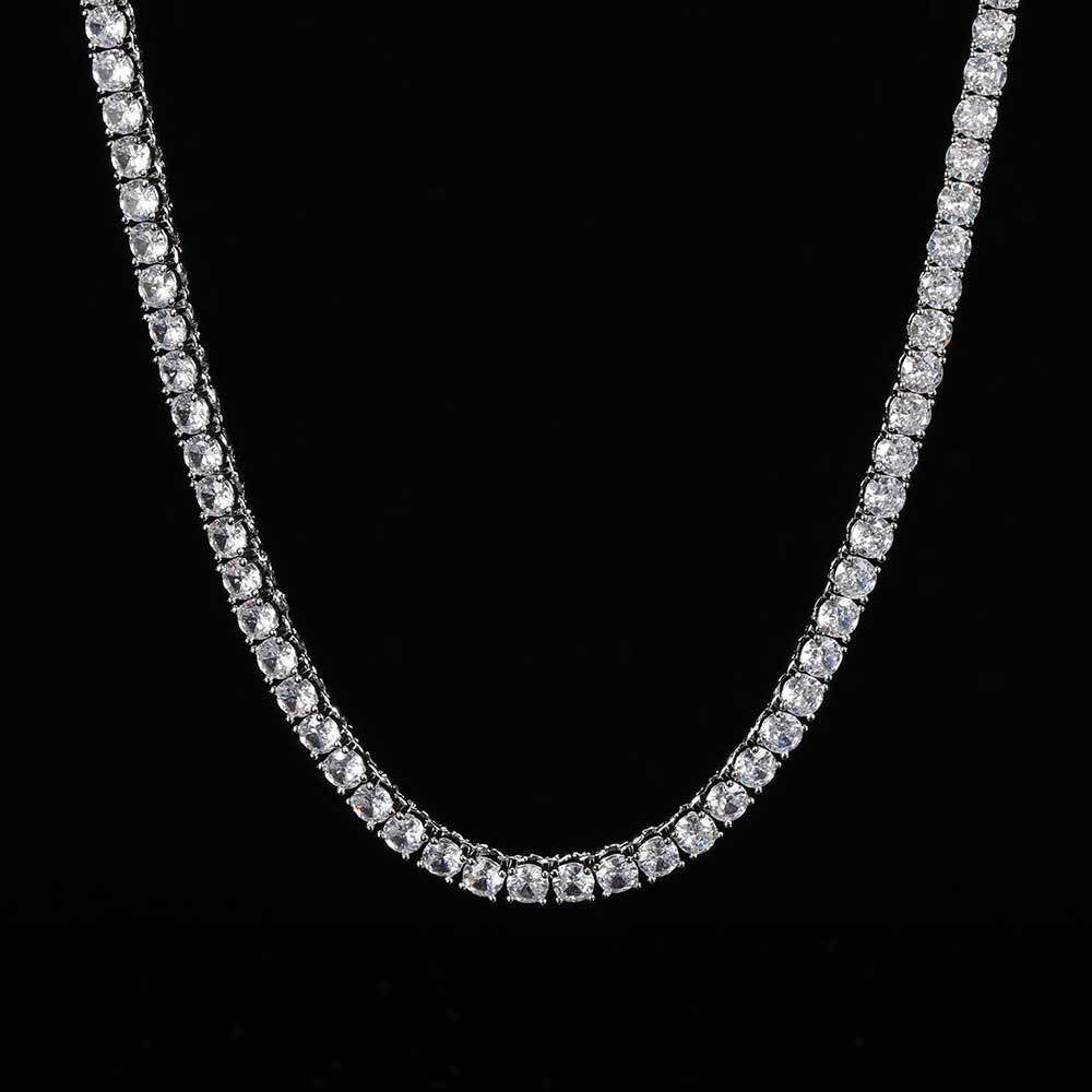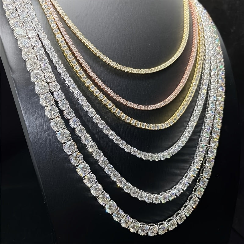 Elevate your style with this golden tennis chain featuring sparkling ice zircons. This hip hop necklace will add a touch of glamour to your look.