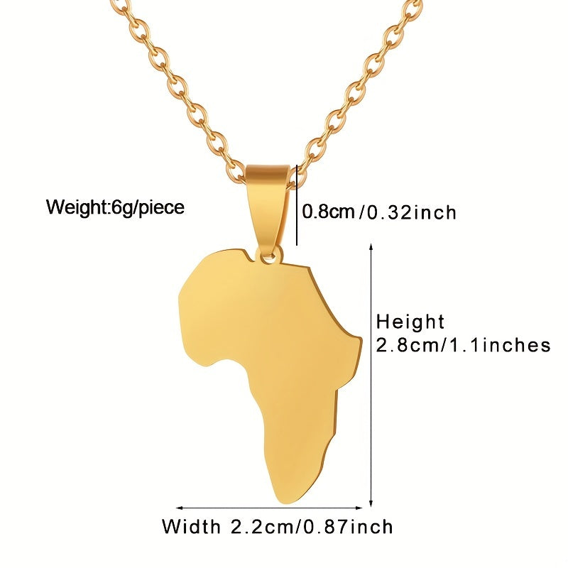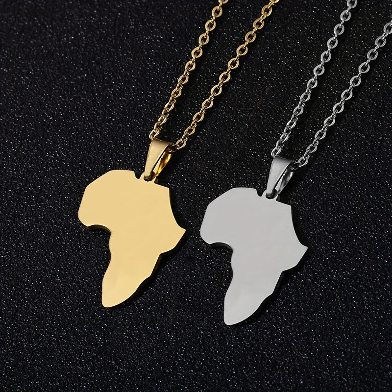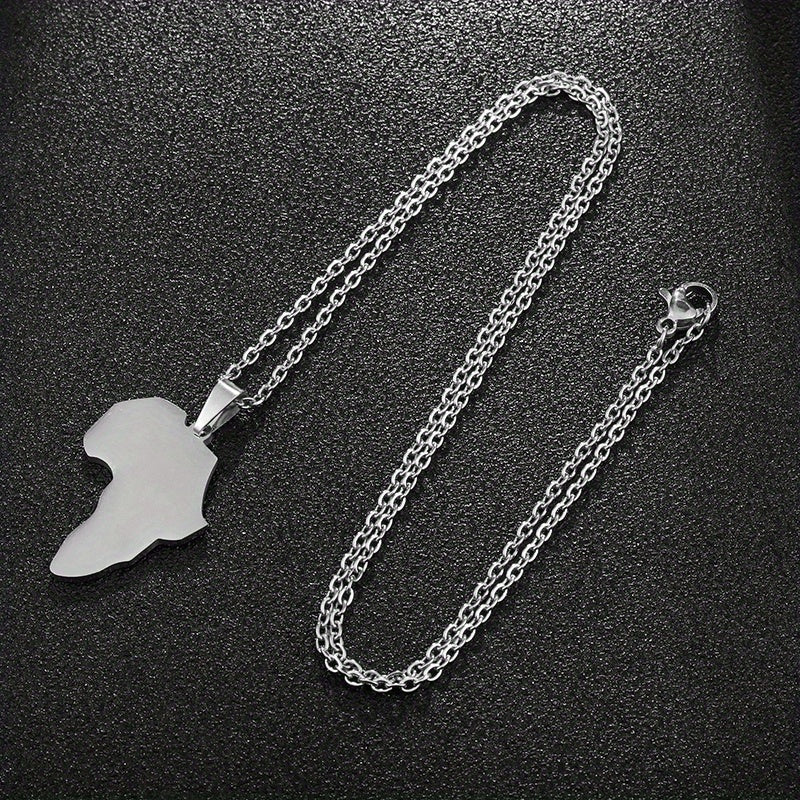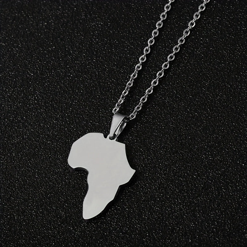 This versatile necklace is made of titanium steel with a glossy finish. It features an African map pendant that symbolizes unity and heritage. Perfect for couples or men seeking a stylish accessory.