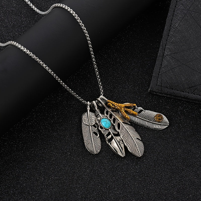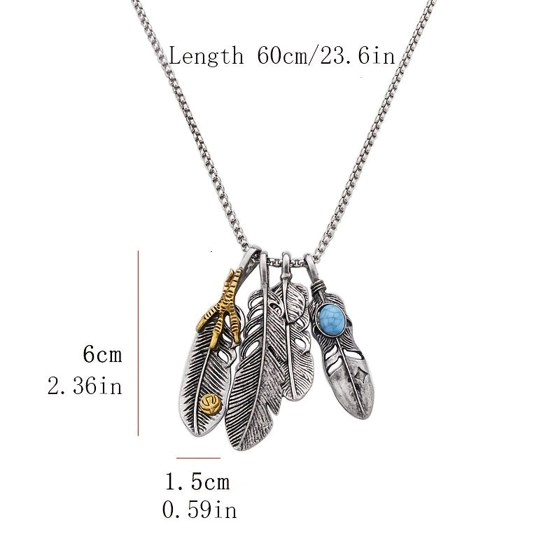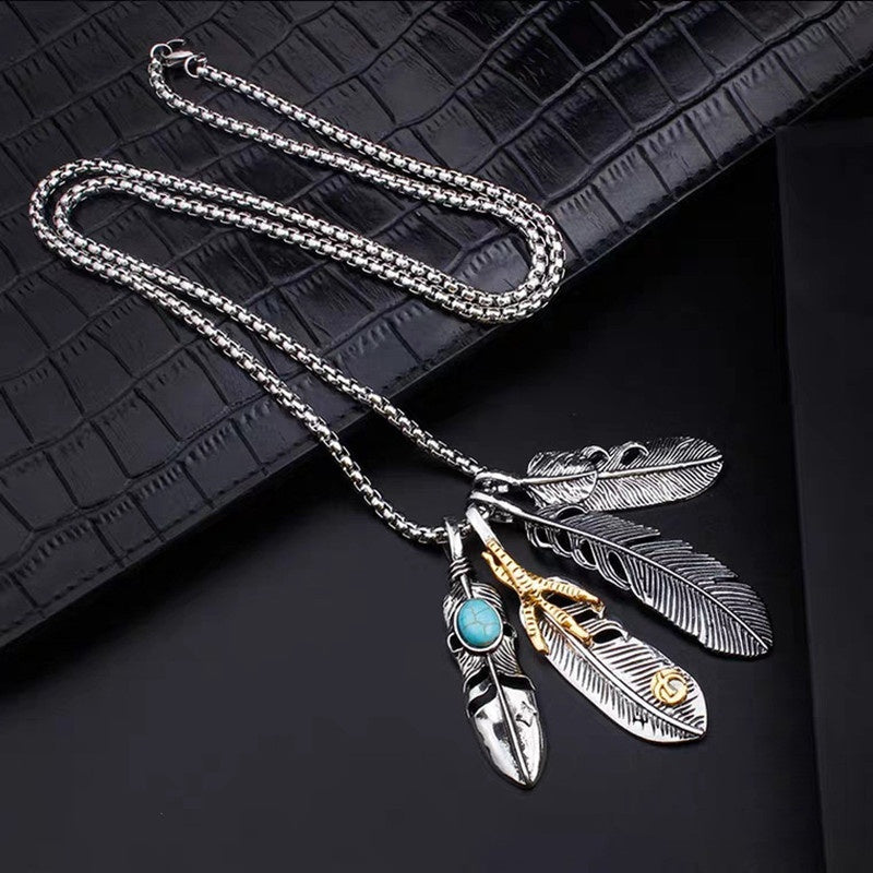 Men's Titanium Steel Feather Necklace Student Bungee Sweater Chain