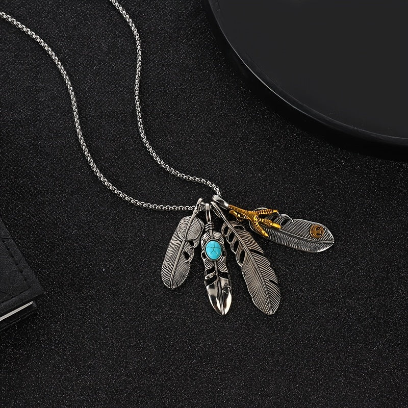 Hip hop pendant featuring a stylish feather design on a durable titanium steel chain.