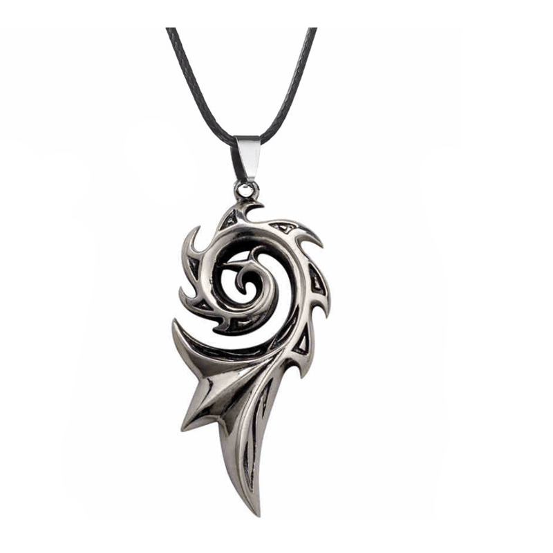 Men's Titanium Steel Flame Pendant Necklace Leather Rope Chain