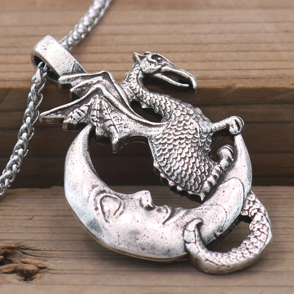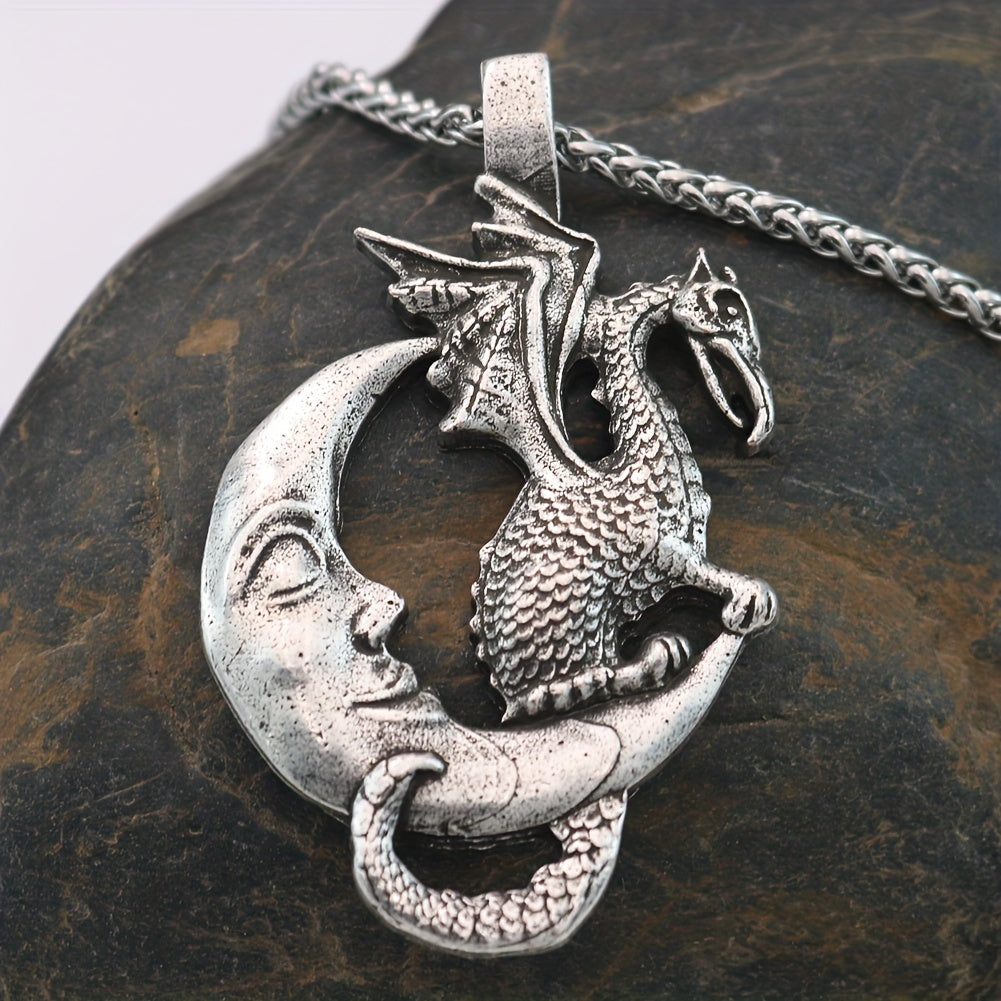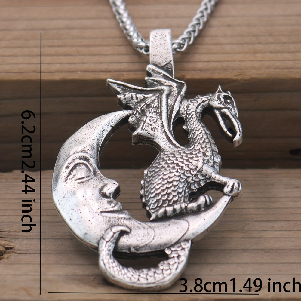 This Viking-inspired necklace features a moon and dragon pendant, perfect for adding a touch of vintage style to your look.