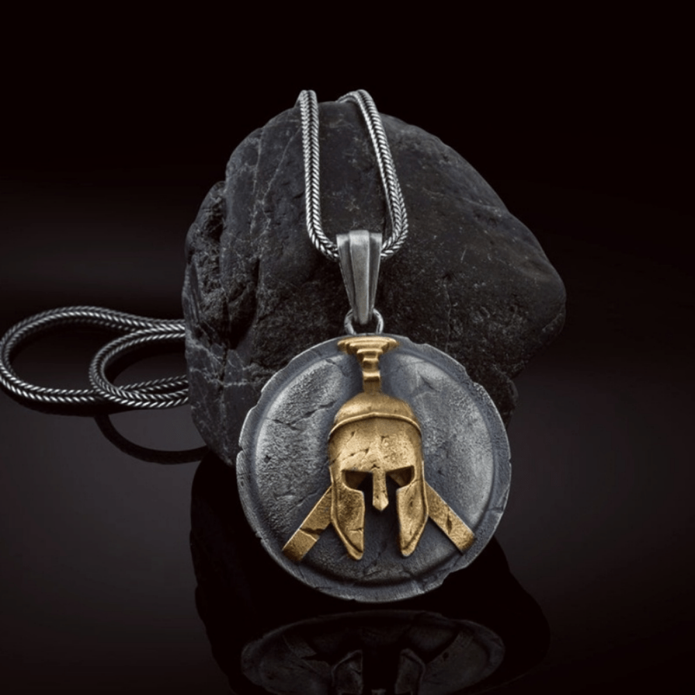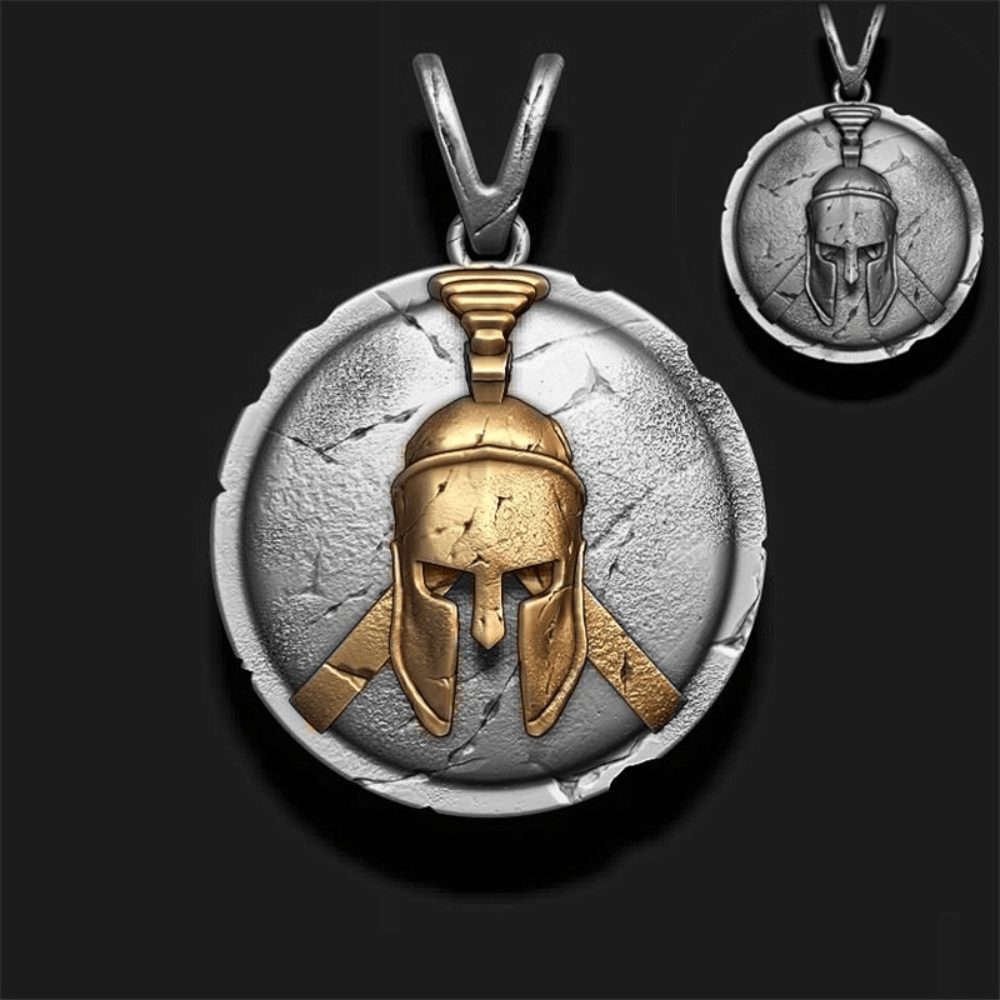 Men's Warrior Helmet Necklace Shield Pendant Amulet Jewelry Gift