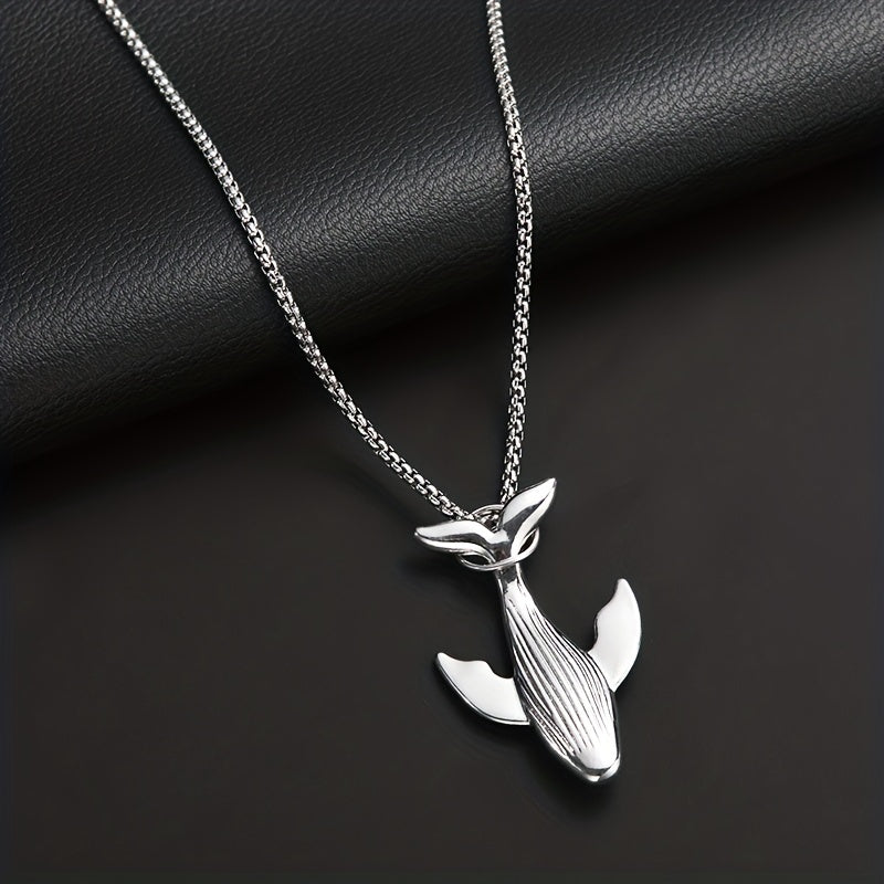 This necklace is designed for men and features a whale pendant. It is a stylish accessory that can be worn for various occasions.
