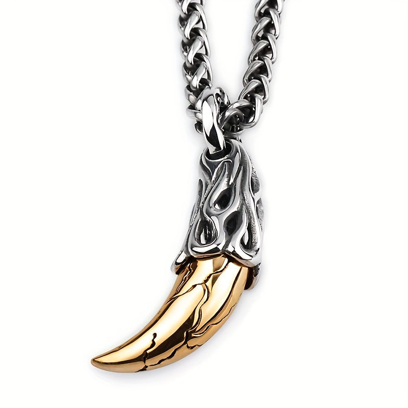 Men's Wolf Fang Charm Pendant Necklace Gothic Punk Biker Jewelry