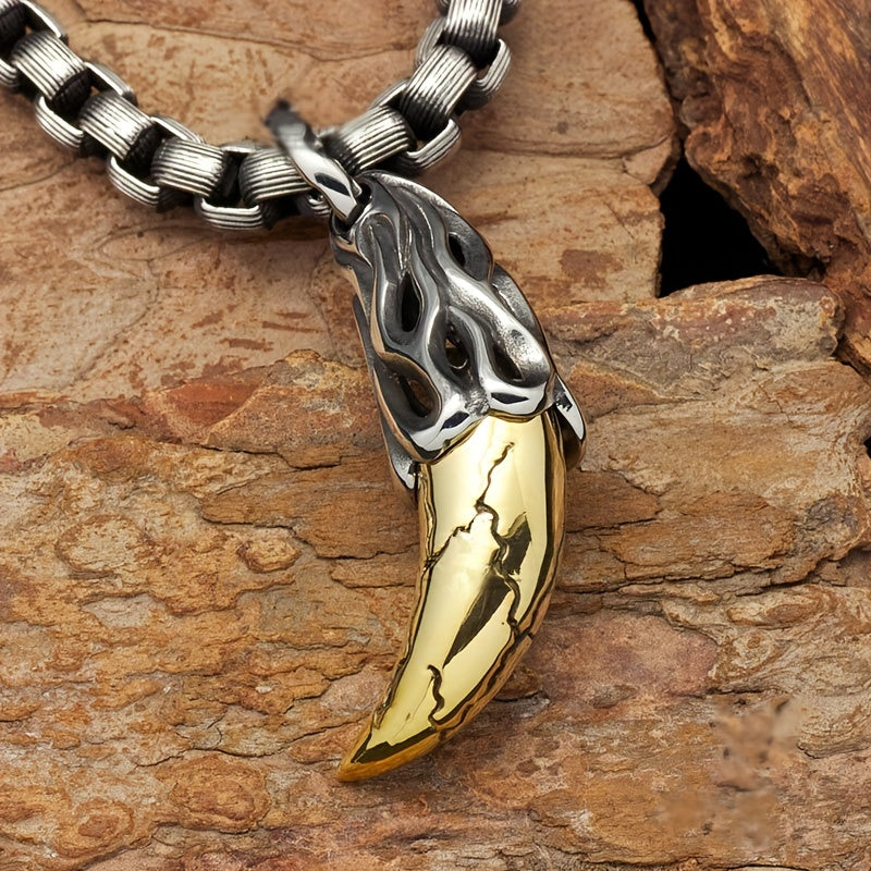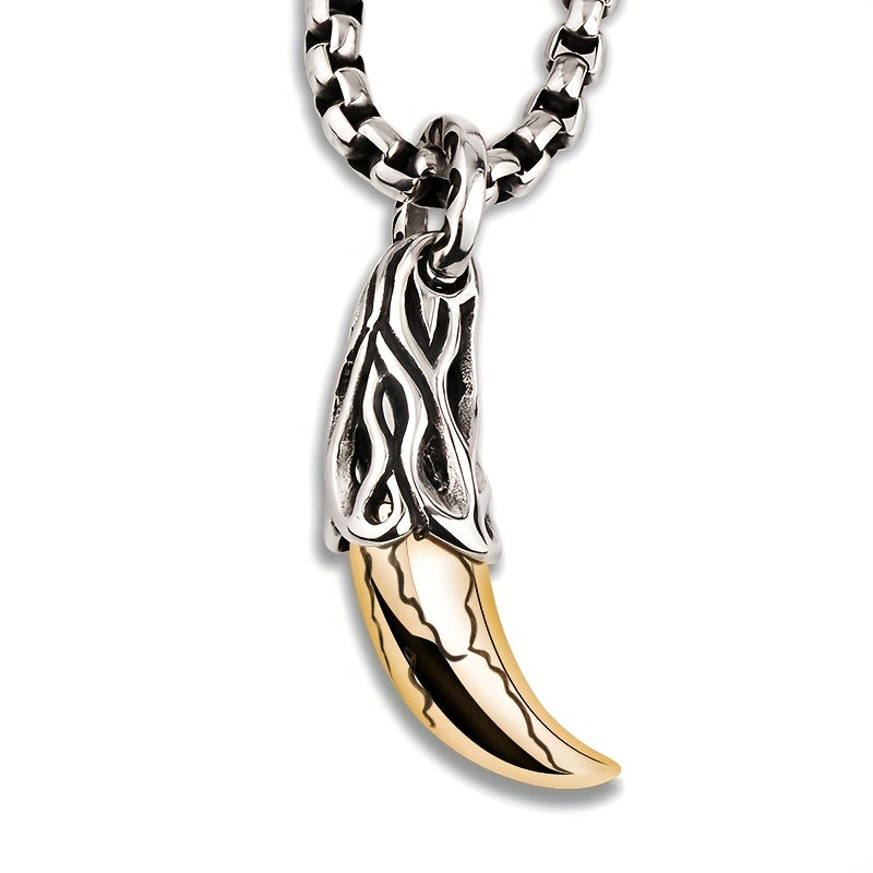 Add a bold touch to your look with this giant wolf fang pendant necklace. Made of high-quality materials, this necklace is perfect for street casual or daily wear. A great gift for men who love gothic or punk jewelry.