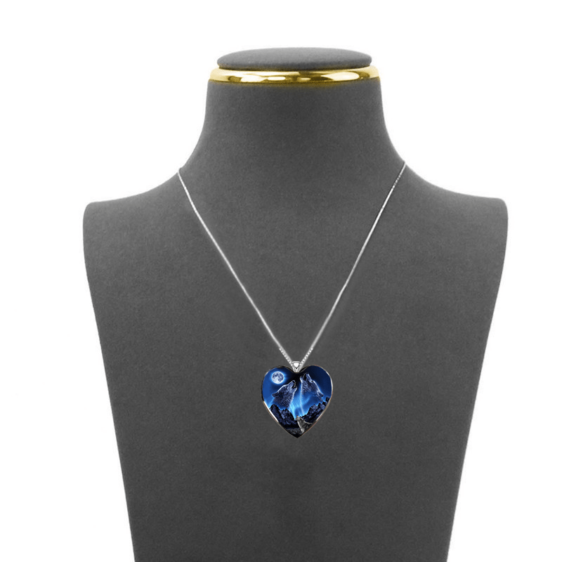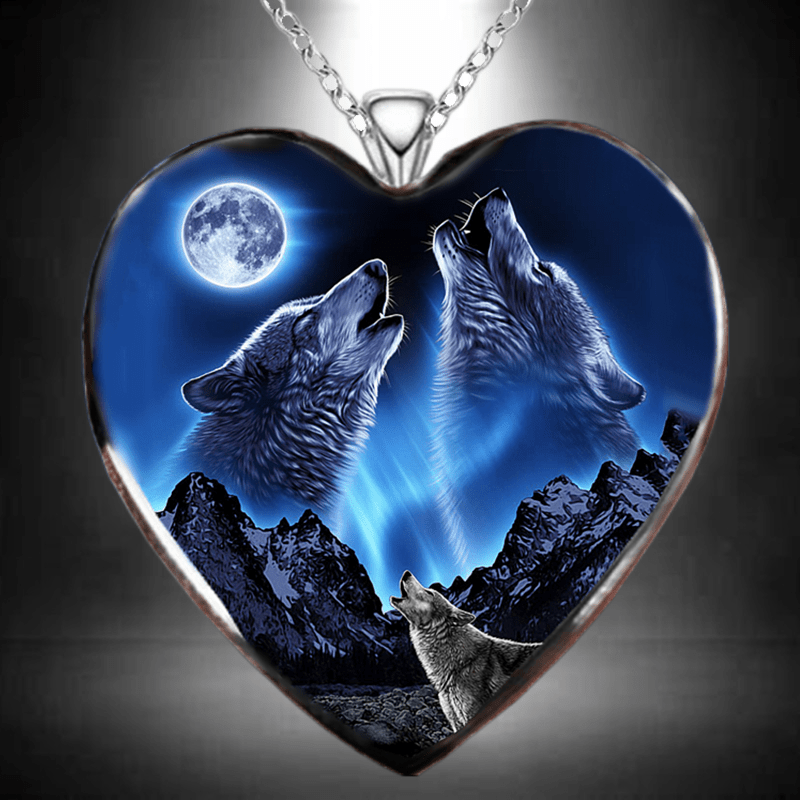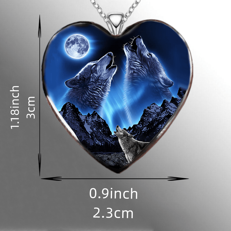 Men's Wolf Head Heart Pendant Necklace Howling Under Moon Street Wolf Necklace