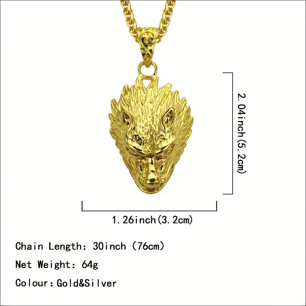 Men's Wolf Head Pendant Necklace Hip Hop Style