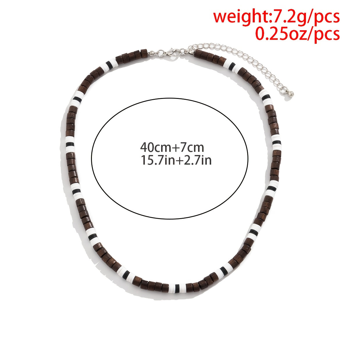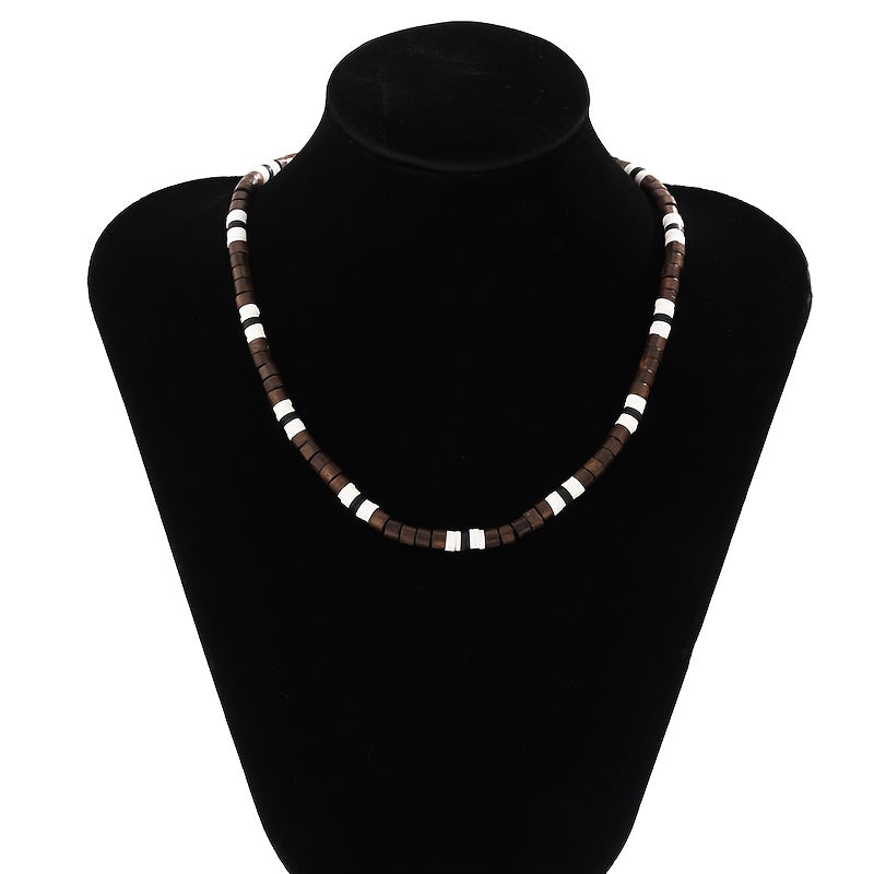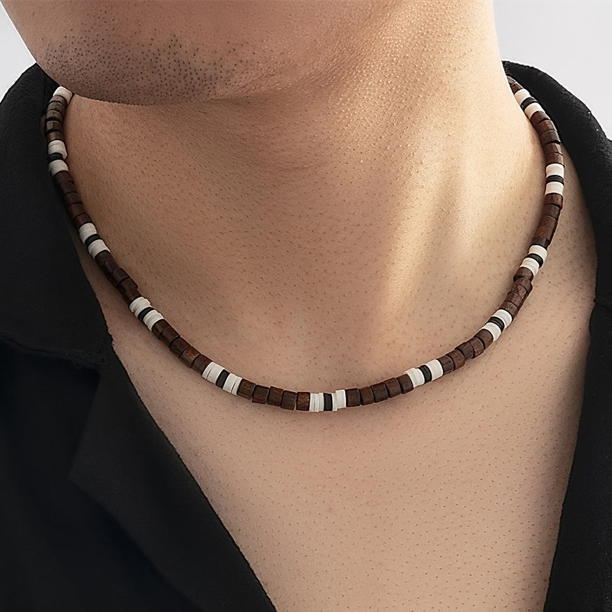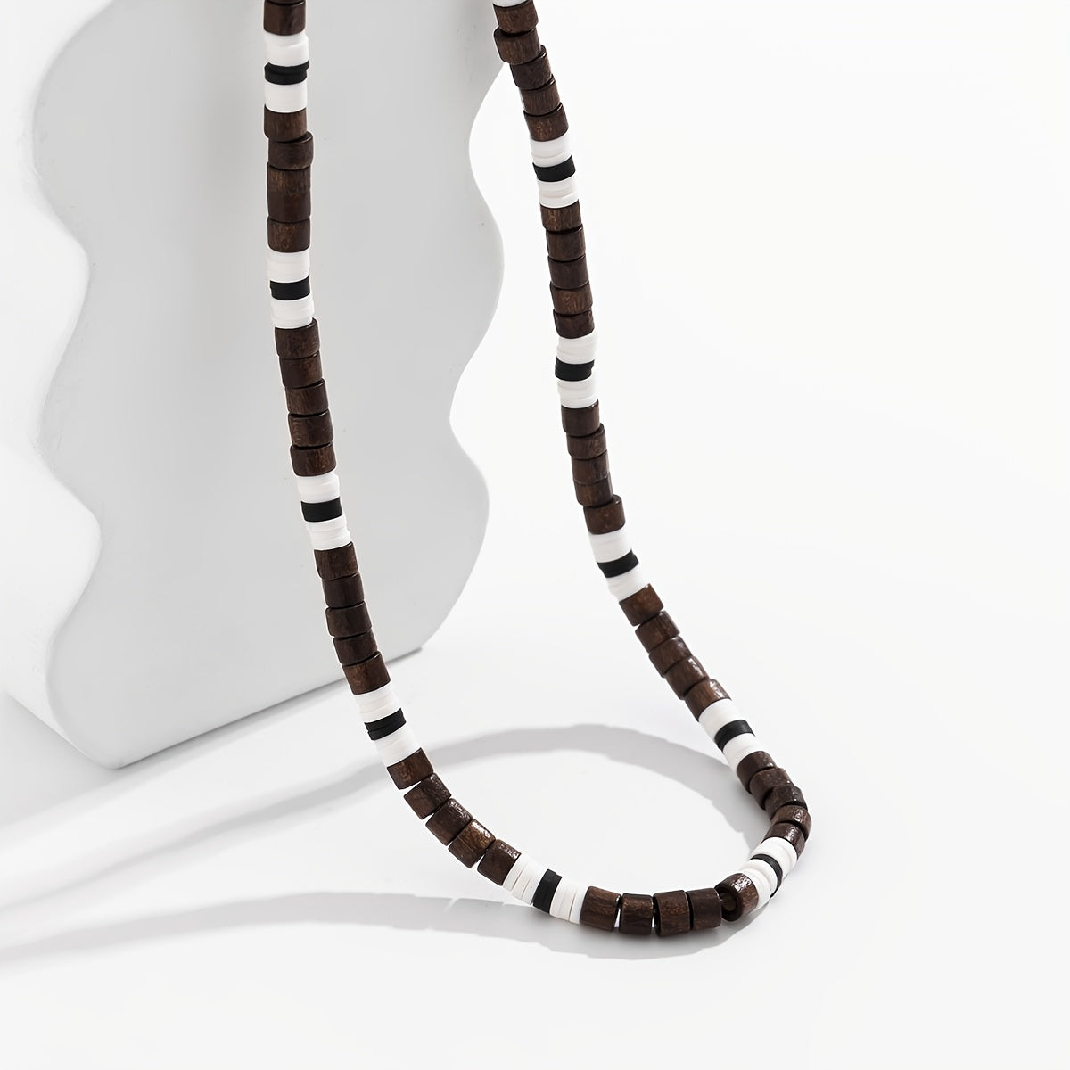 Men's Wooden Beaded Clay Necklace Vintage Beaded Beach Surfer Necklace