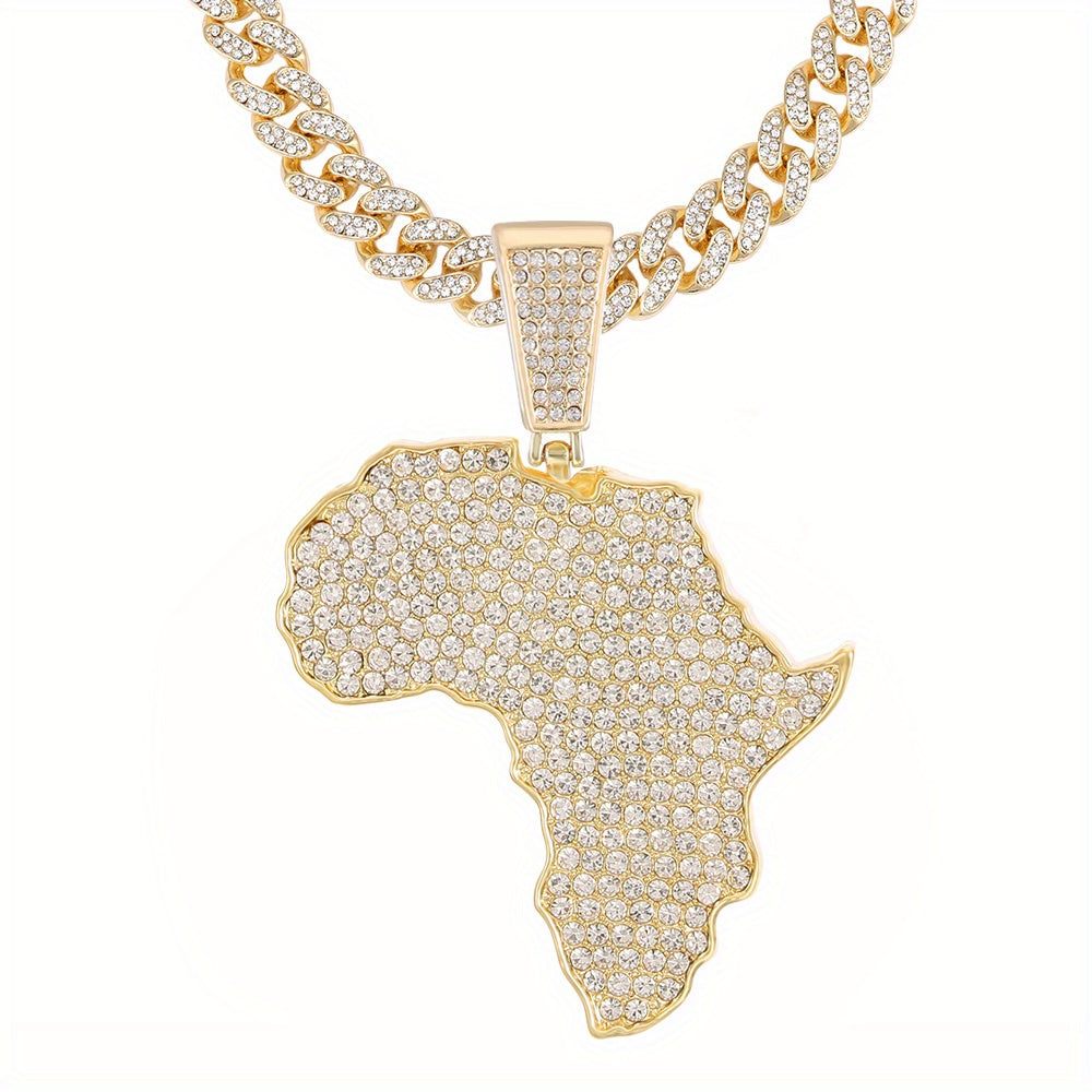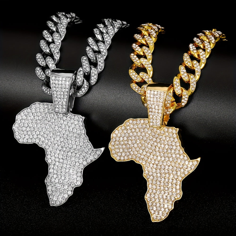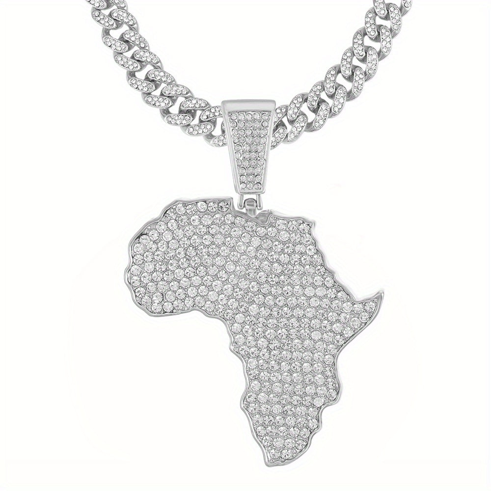Enhance your style with this hip-hop necklace featuring a full zircon inlaid map pendant and a 13mm Cuban chain. It's a bold and stylish statement piece that adds charm to your look.