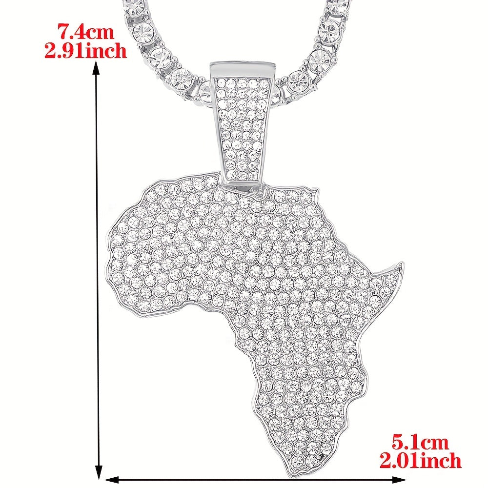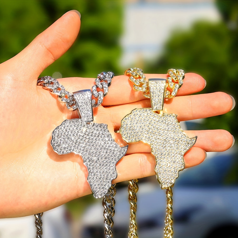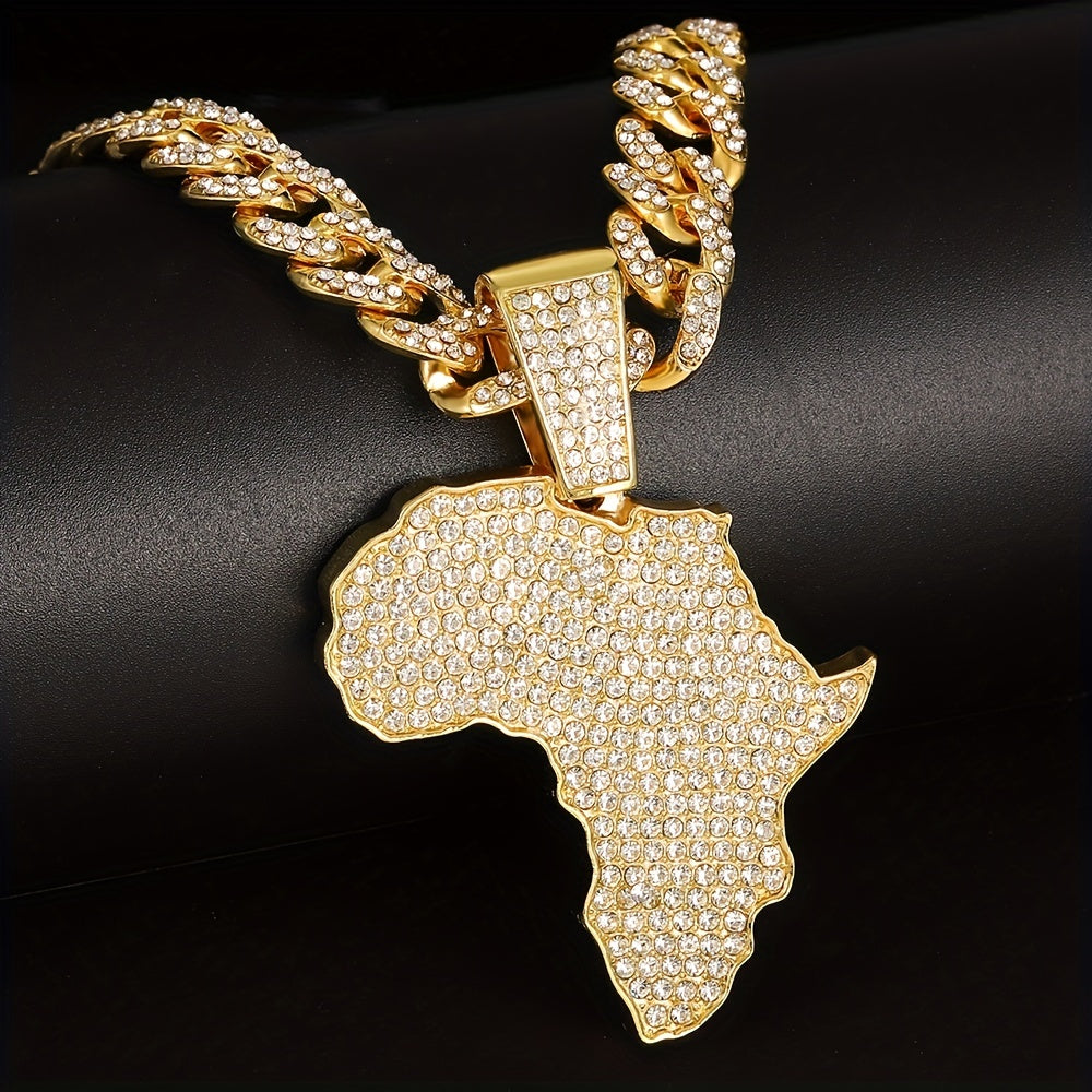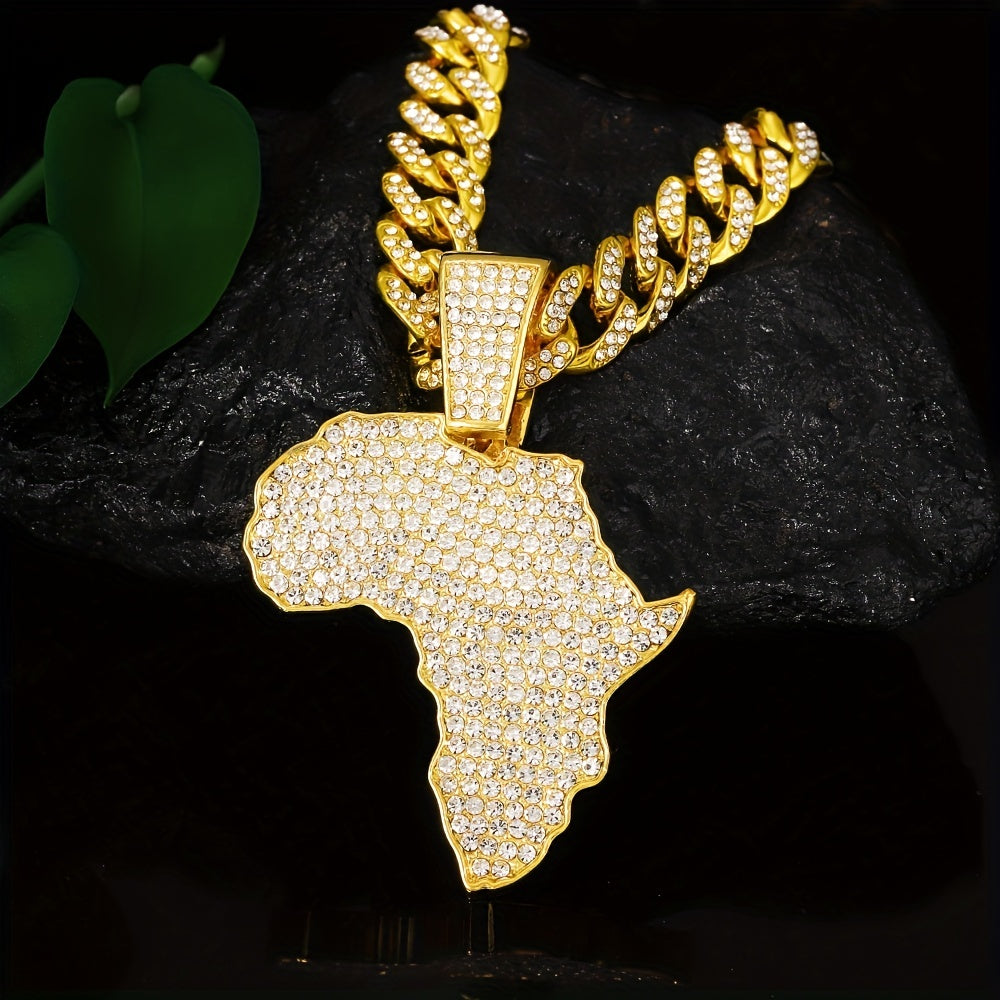 Enhance your style with this hip-hop necklace featuring a full zircon inlaid map pendant and a 13mm Cuban chain. It's a bold and stylish statement piece that adds charm to your look.