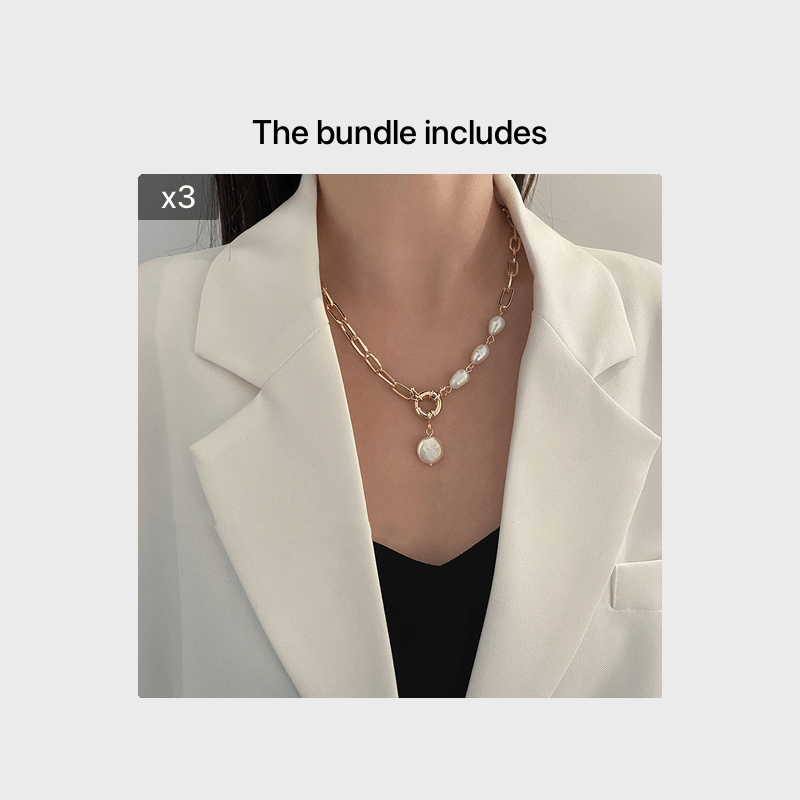 Elegant pearl necklace with metal pendant, perfect for adding a touch of sophistication to any outfit.