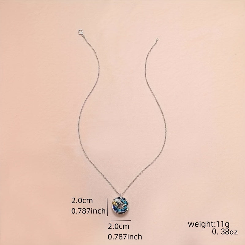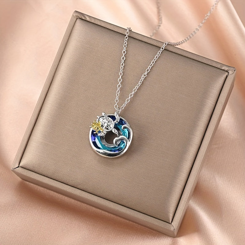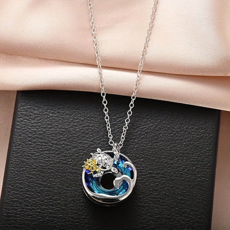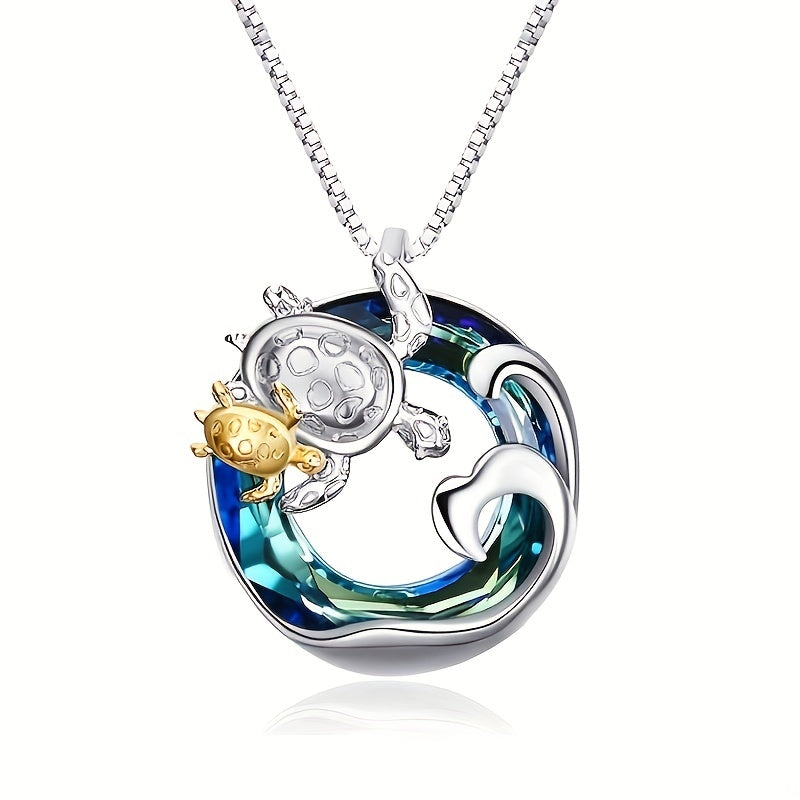 This pendant necklace features a round design with a mother and child turtle motif, making it a meaningful and stylish accessory for men.