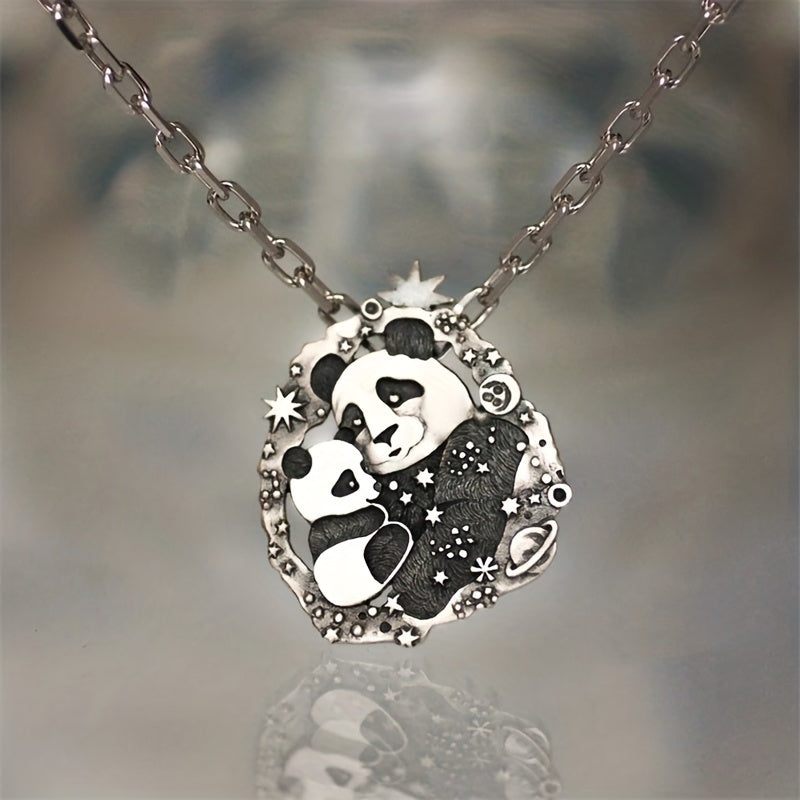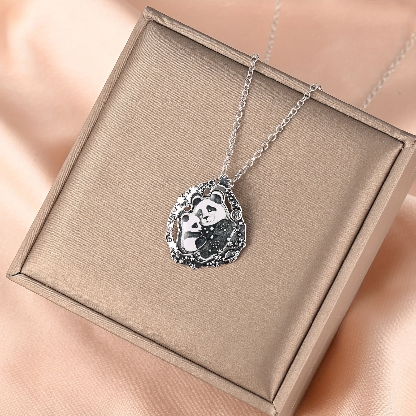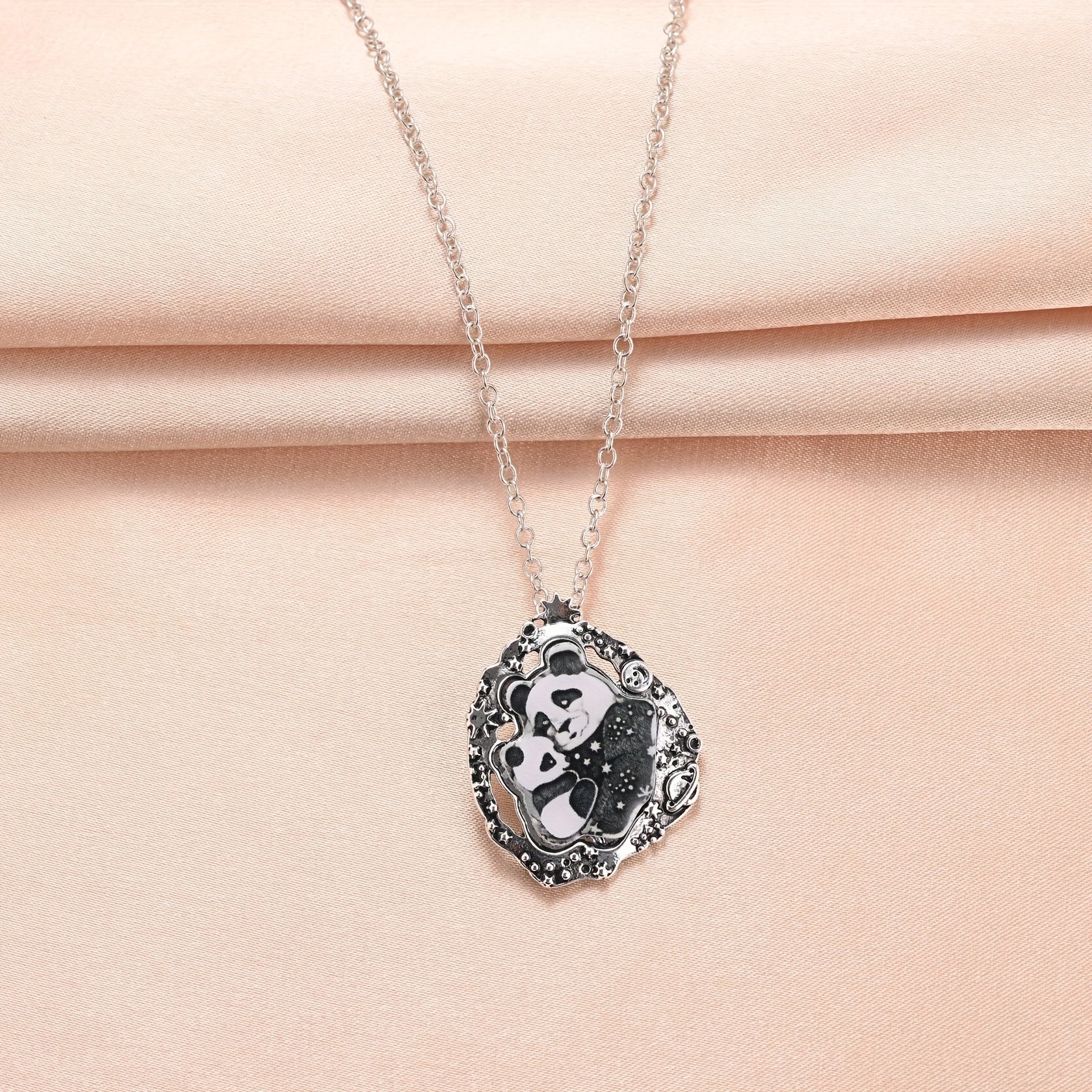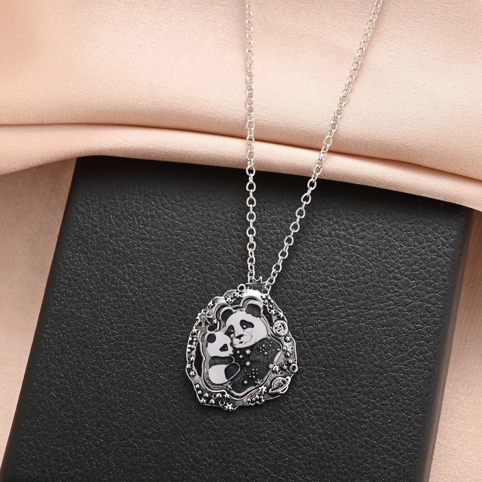 This pendant necklace features a mother and son panda face to face design, adding a touch of personality to any outfit. It makes a perfect gift for mothers on any occasion.