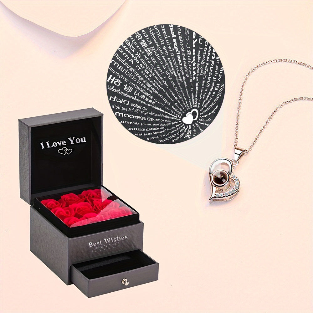 This romantic necklace features a rose flower design and can project 'I Love You' in 100 languages. A perfect gift for mothers or loved ones.