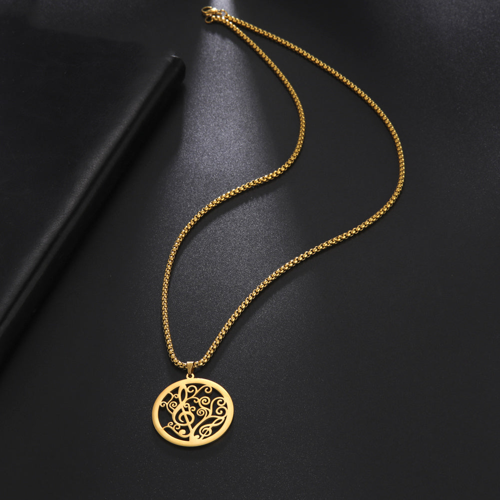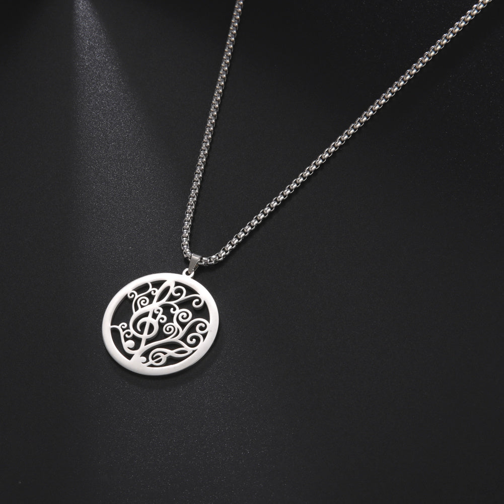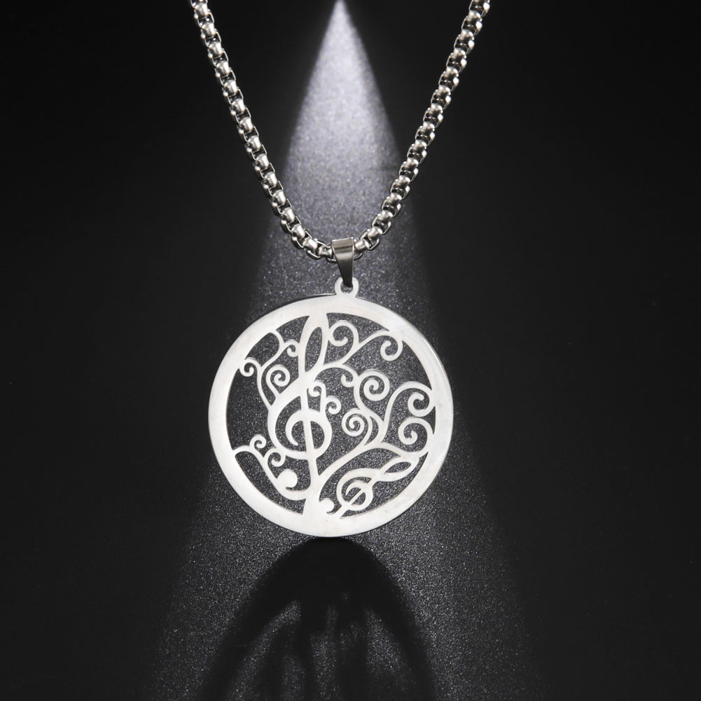 Music Note Necklace Round Pendant Stainless Steel Party Jewelry