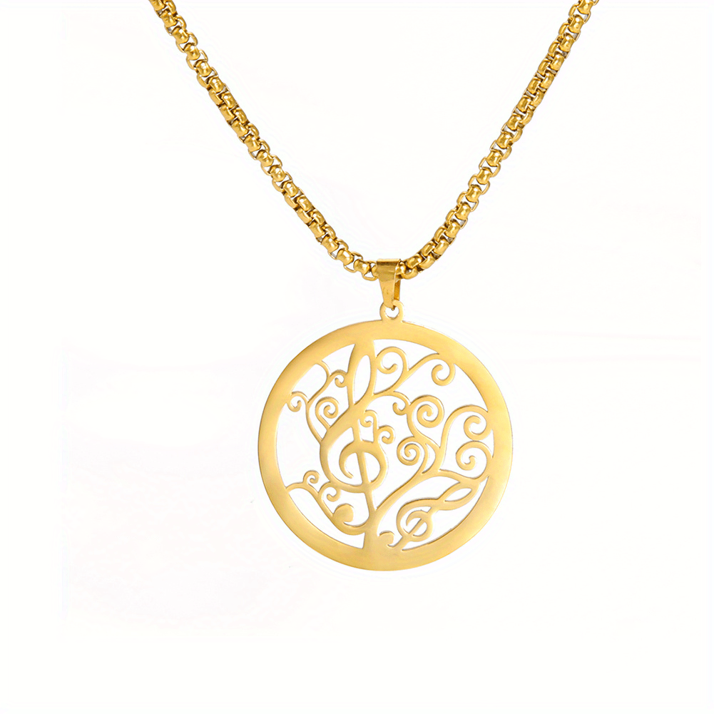 This music note necklace is a stylish accessory for both men and women. The round pendant design adds a touch of elegance to your outfit, making it perfect for parties or everyday wear.